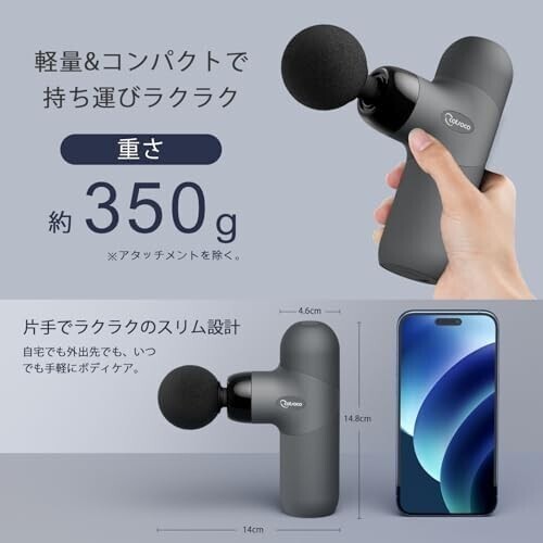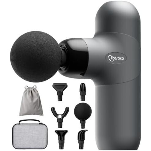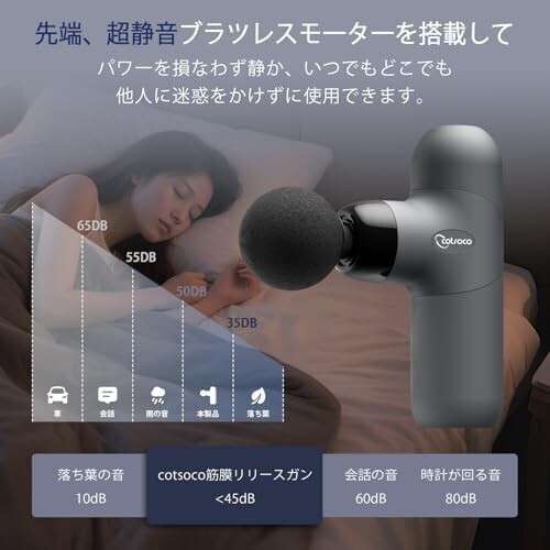 シルバーグレー cotsoco 筋膜リリースガン8mm振幅 4段階強力振動 6つのヘッド付属 静音 350g超軽量 、きんまくリリース 電動ガンType-C急速充電、 筋膜ガン、携帯便利 収納袋&日本語取扱説明書付き プレゼント ギフト最適 二年メーカー