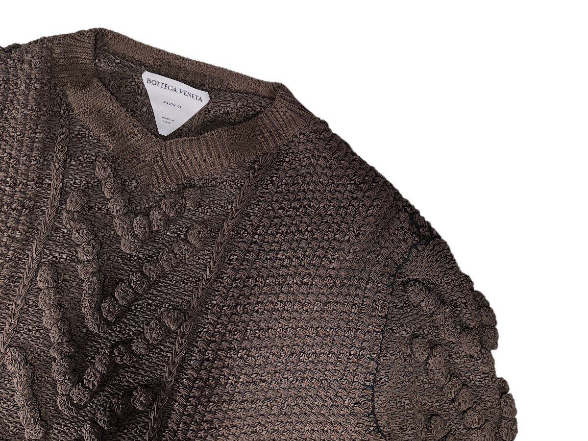 J250(S).. BOTTEGA VENETA ボッテガ ヴェネタ セーター アラン ニット 最高級 イタリア製 ★ 2046 EBONY