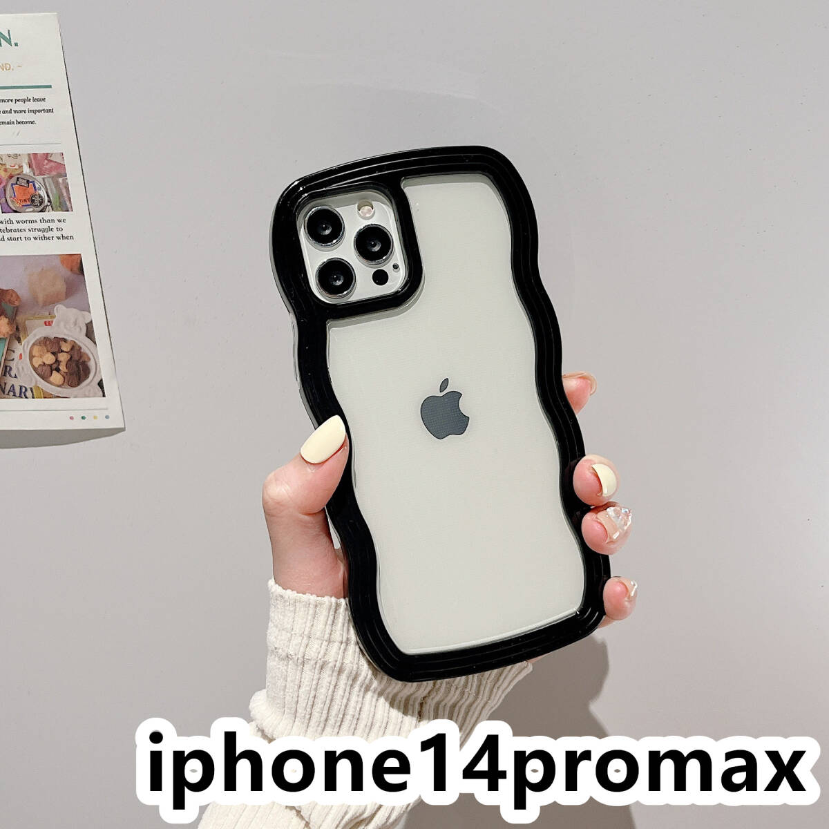 iphone14promaxケース カーバー TPU 可愛い 波型 お洒落 軽量 ケース 耐衝撃高品質ブラック