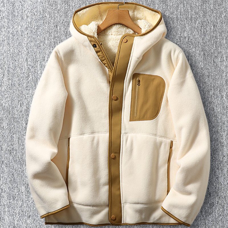 新品 フェイクボア ジャケット スタンドカラー 配色 バイカラー 秋冬 防寒 厚手 メンズ 保温 ボアフリースジャケット ベージュ T8167-L