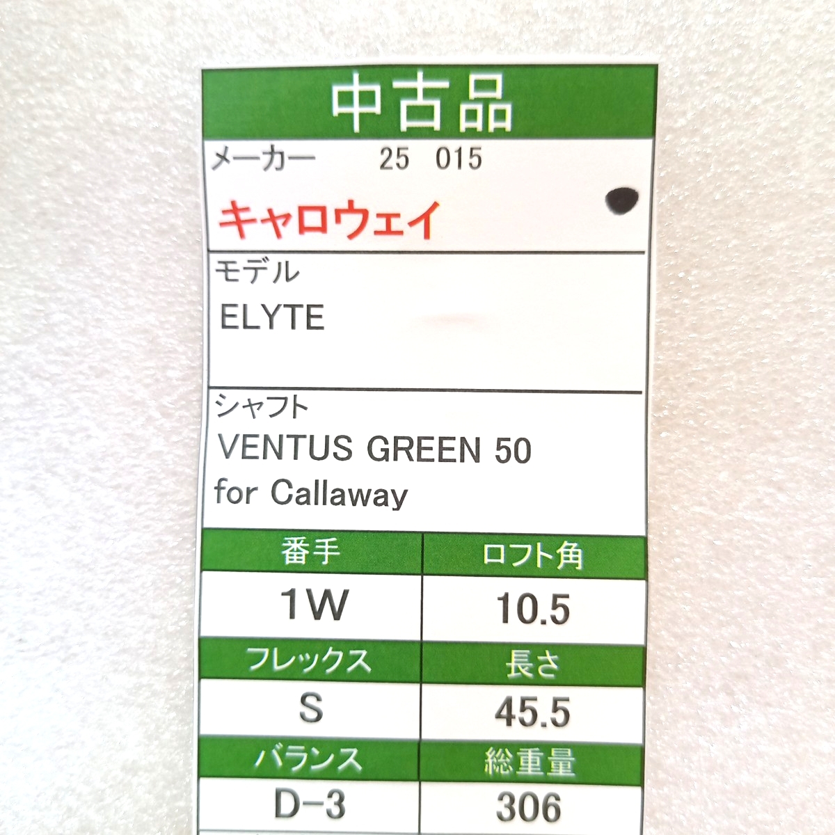 【即決価格】【1W】 キャロウェイ/ エリート/10.5度/VENTUSグリーン50 for CW/FLEX S/カバー無し