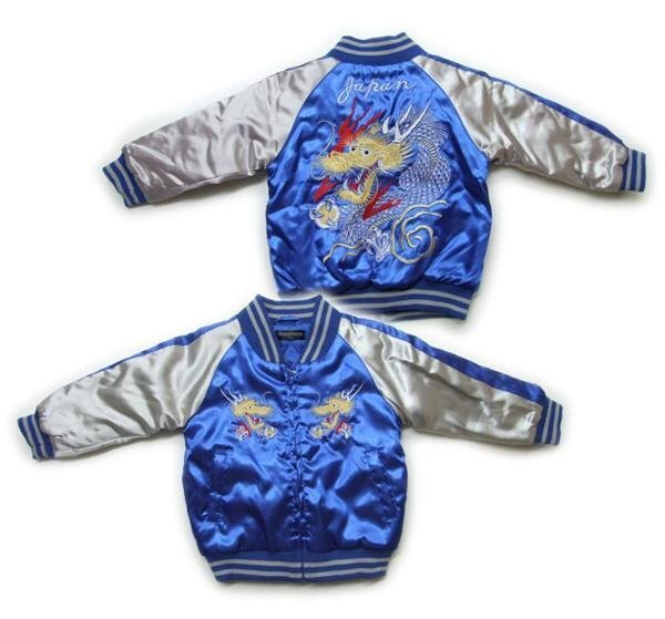 背中に豪華な刺繍が入ったキッズスカジャンです。