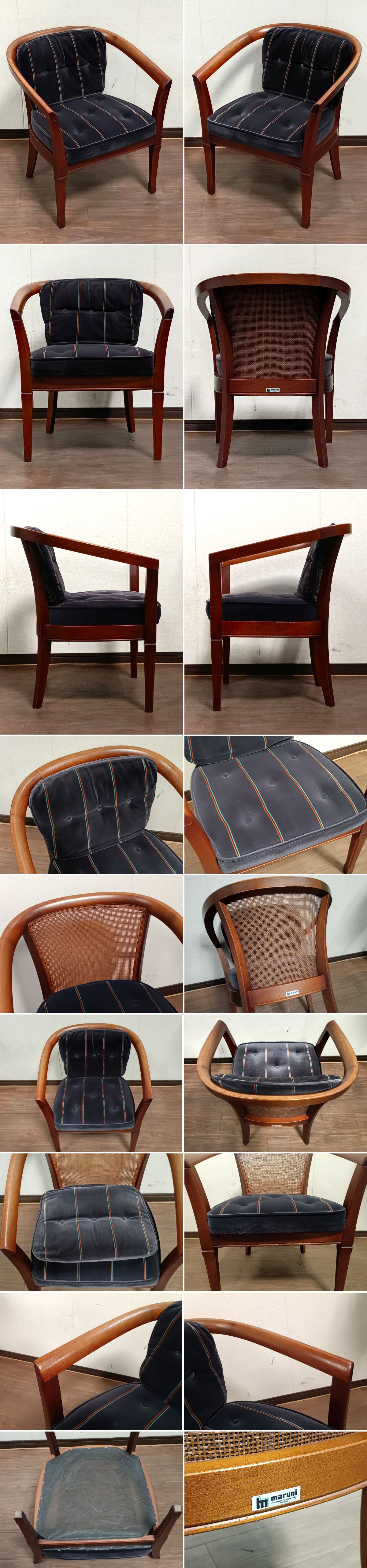 ◎上質◎【maruni/マルニ木工 アームチェア 一人掛け 1P ひじ掛け シングル 木製 チェア 椅子 クッション 籐張り 背面ラタン風 】