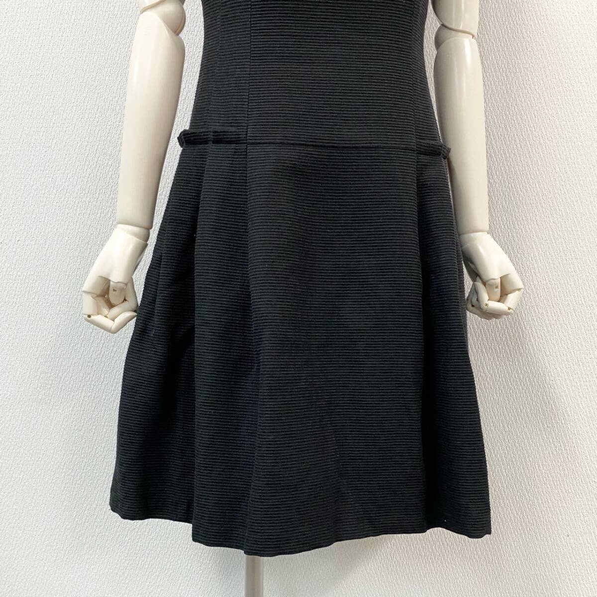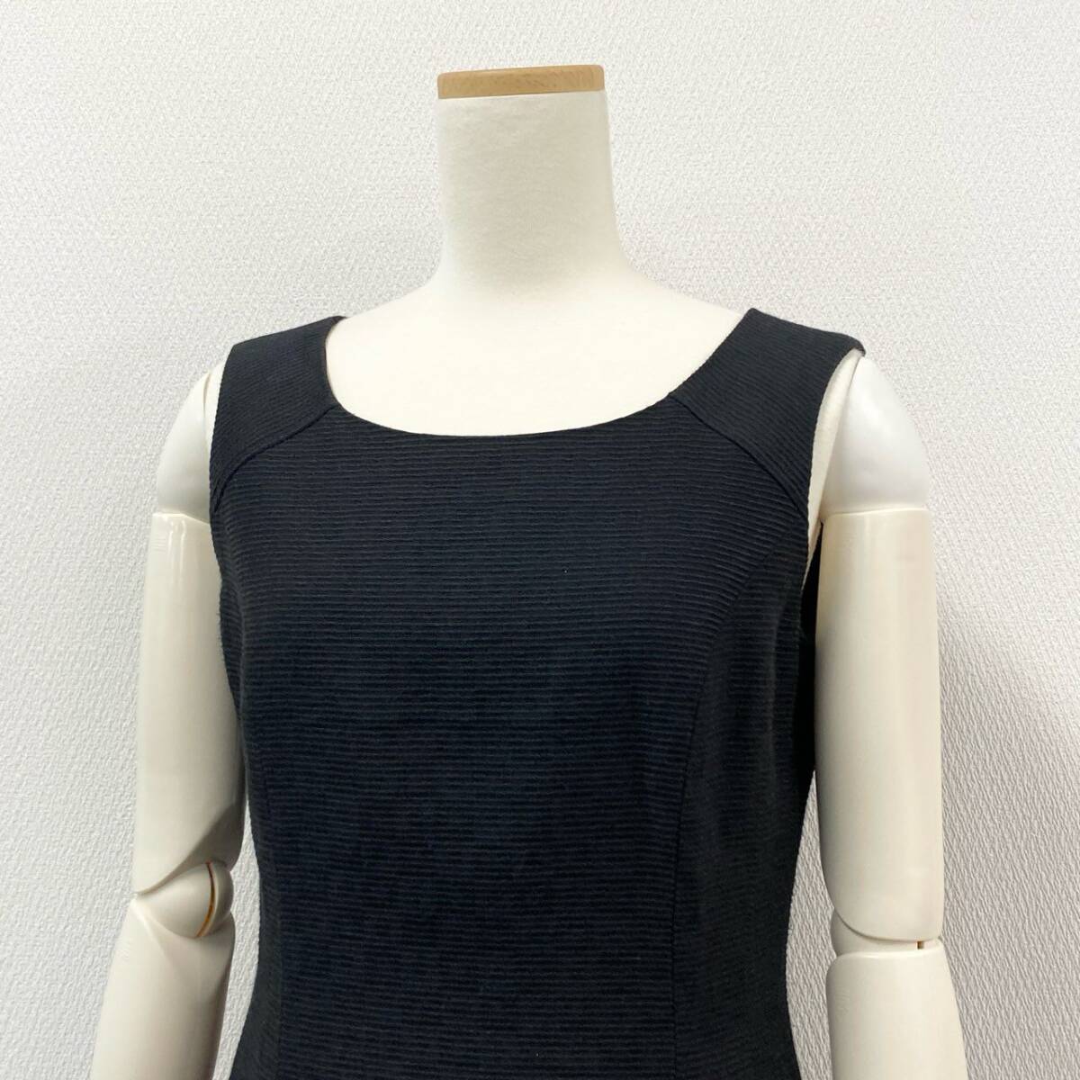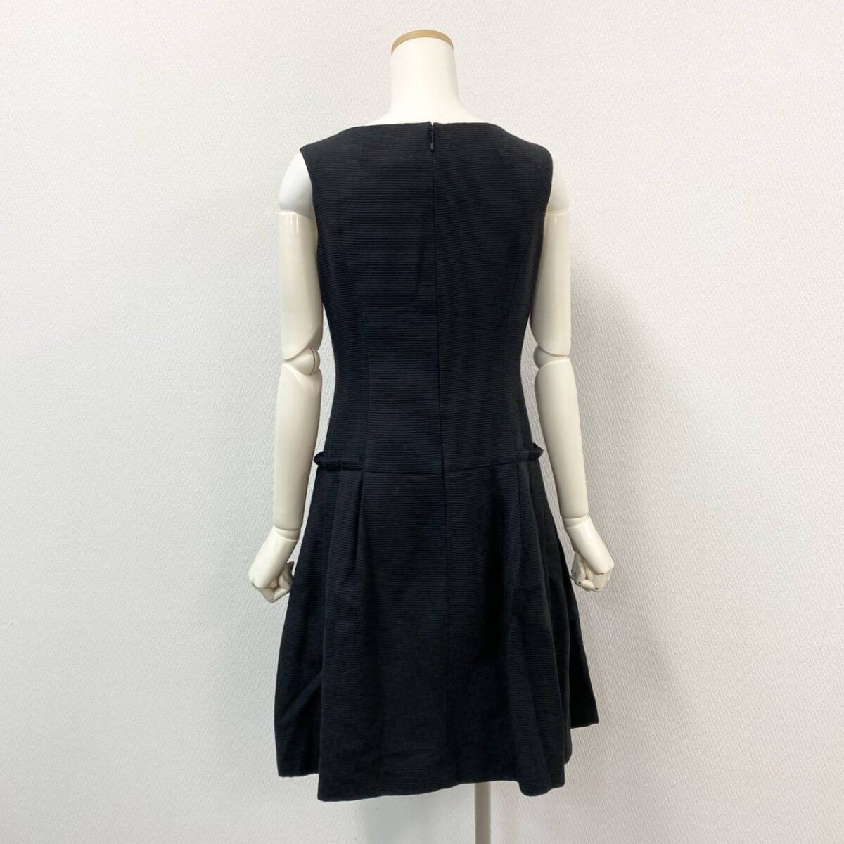 AIによるサイズ診断 | 本アイテムはレディース表記サイズ36で、実寸は着丈88.5cm・身幅44cmです。 身長160cm前後の方でひざ丈ほどのシルエットになり、上品な印象を演出します。 バスト80〜86cm程度の方に適し、程よく体に沿いながらタック入りのスカート部分が自然な広がりを生み出します。 オケージョンやお呼ばれシーンに対応できる、すっきりとしたフィット感のサイズ感です。 |