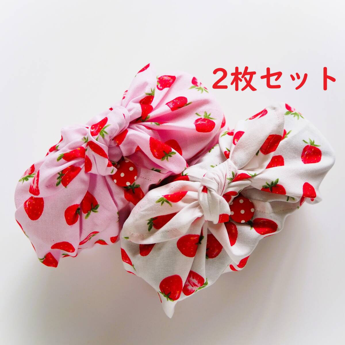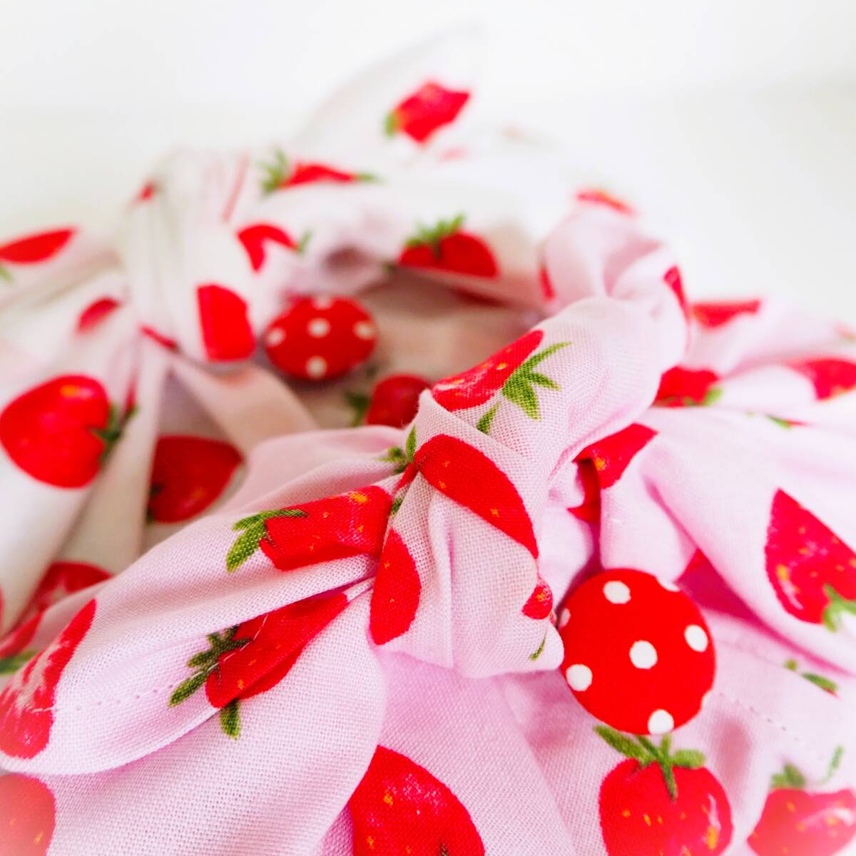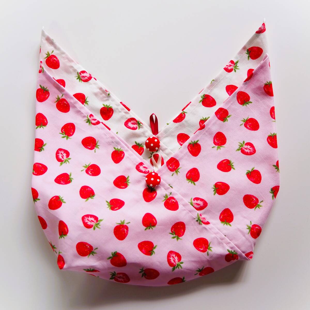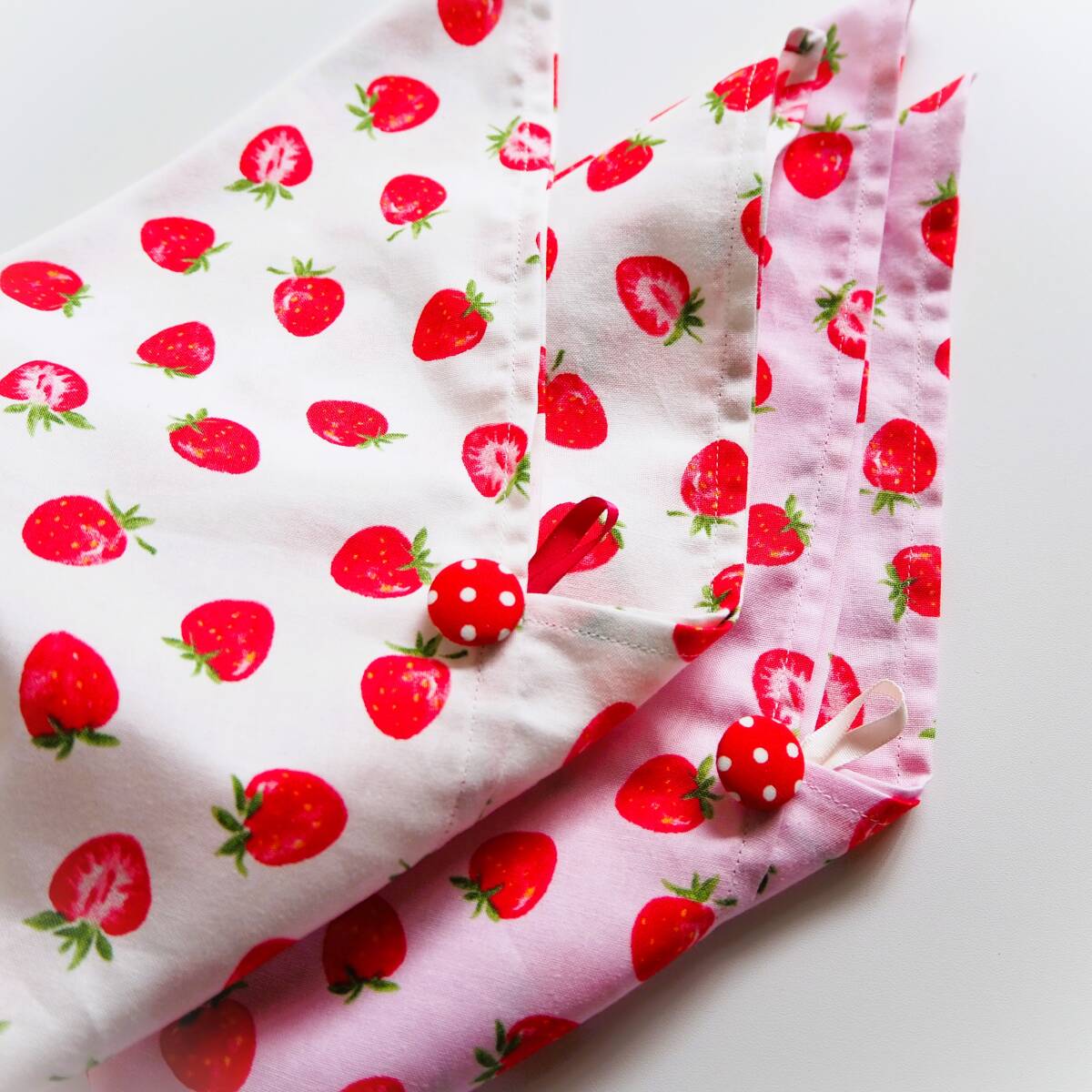 作成キット2枚セット★いちご柄マチ付きあづま袋 くるみボタン付きあずま袋 お弁当包み巾着袋おにぎりポーチの代わりにも!手作りキット