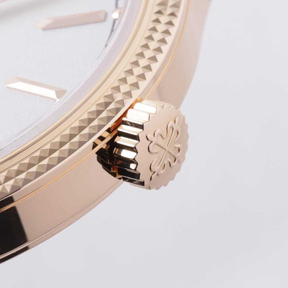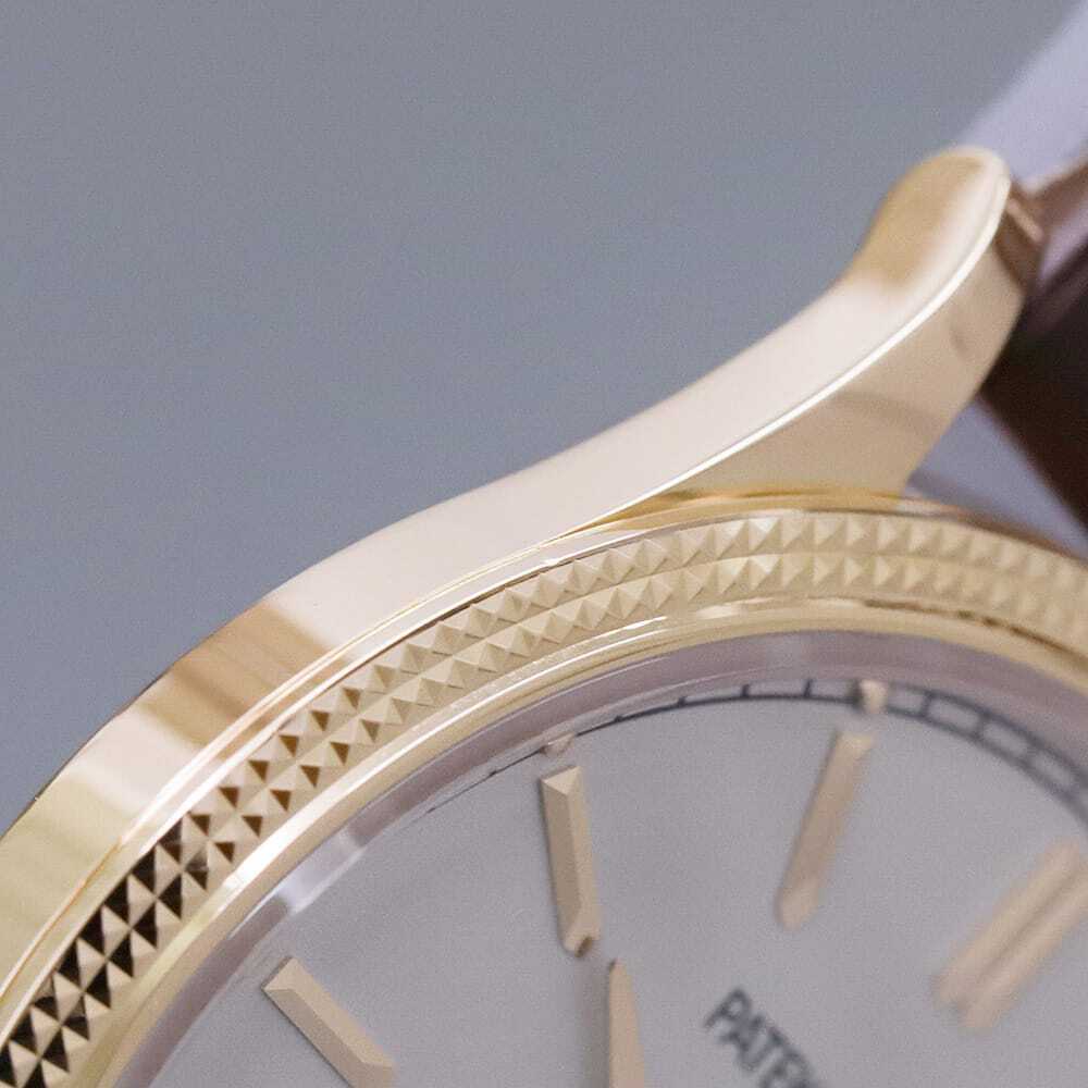 モデル情報 | ヴィクトリア女王やアインシュタインをはじめ、世界中の名士や著名人に愛されてきた パテックフィリップ。その中でも、プレステージとエレガンスの究極的な表現とされるのが カラトラバ コレクションです。Ref.6119R-001 は、2021年に発表されたモデルで、特徴的な 「ホブネイルパターン」(鋲打ち模様)が施されたベゼルが印象的。クラシカルでありながら、洗練された高級感を漂わせるデザインに仕上がっています。 ムーブメントにはキャリバー30-255 PSを搭載。従来の手巻きムーブメントと比べて大幅に改良されており、ツインバレル(2つの香箱)を採用することで パワーリザーブ65時間 を実現しています。また、直径30.4mmのムーブメントサイズにより、ケースサイズも39mmとモダンなバランスを保ち、クラシックながらも現代のトレンドにマッチするデザインとなっています。 |
