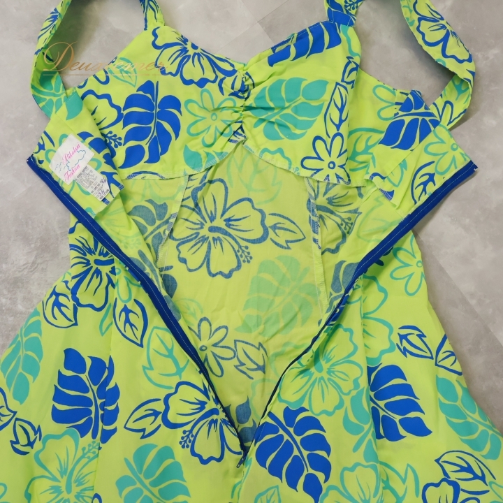 | 【商品名】フラダンス衣装 ワンピース ドレス 【サイズ】3/4表記 平置き実測:総丈約106cm(裾~肩部まで)、身幅約40cm、ウエスト約34cm ※実測の為、多少の誤差はご了承ください 【仕様】 ・背面ファスナー仕様 ・伸縮性無し ------------------------------------ 【ポイント】 ▽T&L MUUMUU FACTORY ハワイ製 ▽グリーン×ブルーの明るい色合い ▽花柄やリボンでかわいい印象に ------------------------------------ 【撮影時使用トルソー】 種 類:女性用トルソー9号 (一般的に使用されるサイズです) サイズ:肩幅約37cm、バスト約88cm、ウエスト約66cm、ヒップ約89cm |