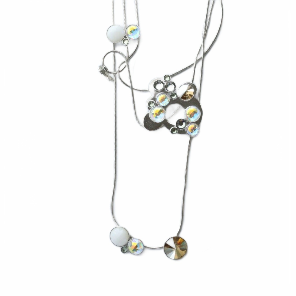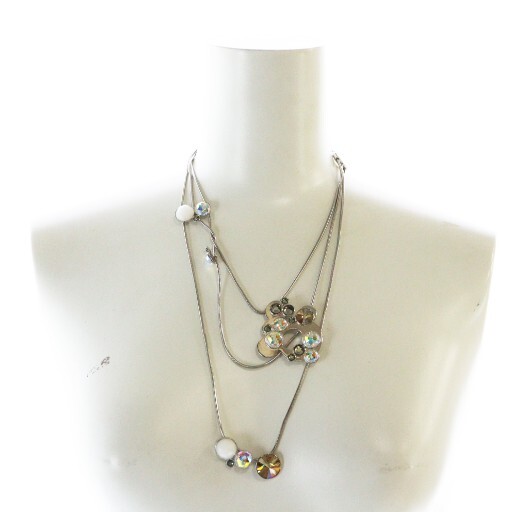 スワロフスキー SWAROVSKI ネックレス アクセサリー クリスタル ラインストーン 3連 蛇腹チェーン ロゴ シルバー色