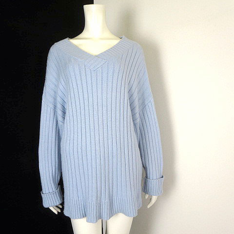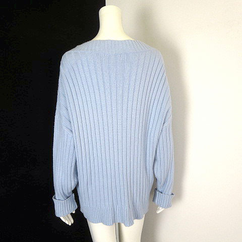 ジーナシス JEANASIS ニット セーター オーバーサイズ Vネック ドロップショルダー 長袖 F ライトブルー 水色 レディース