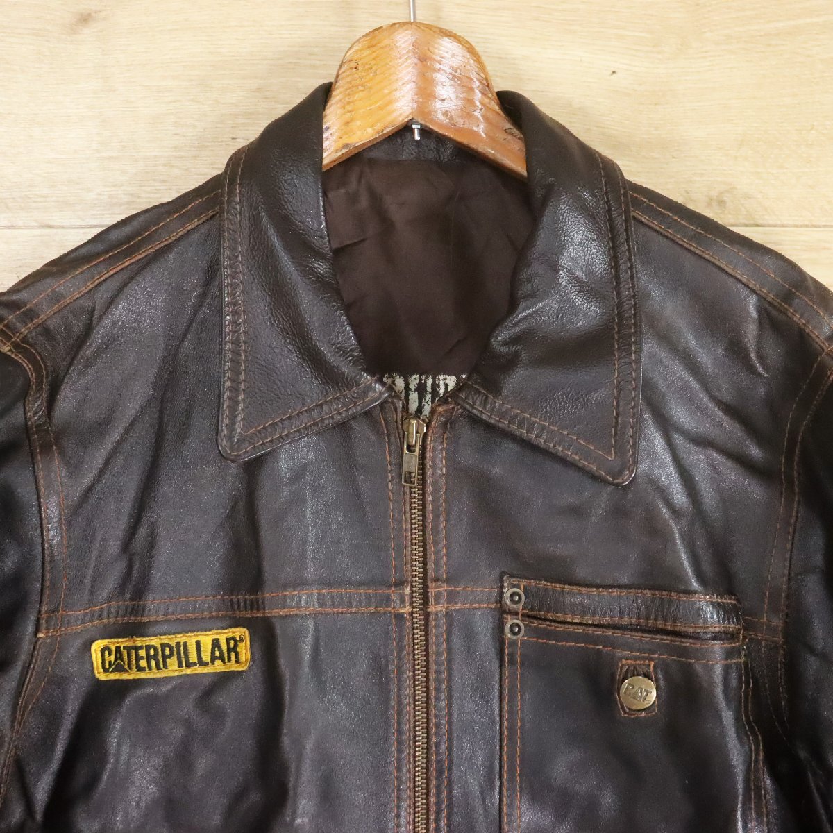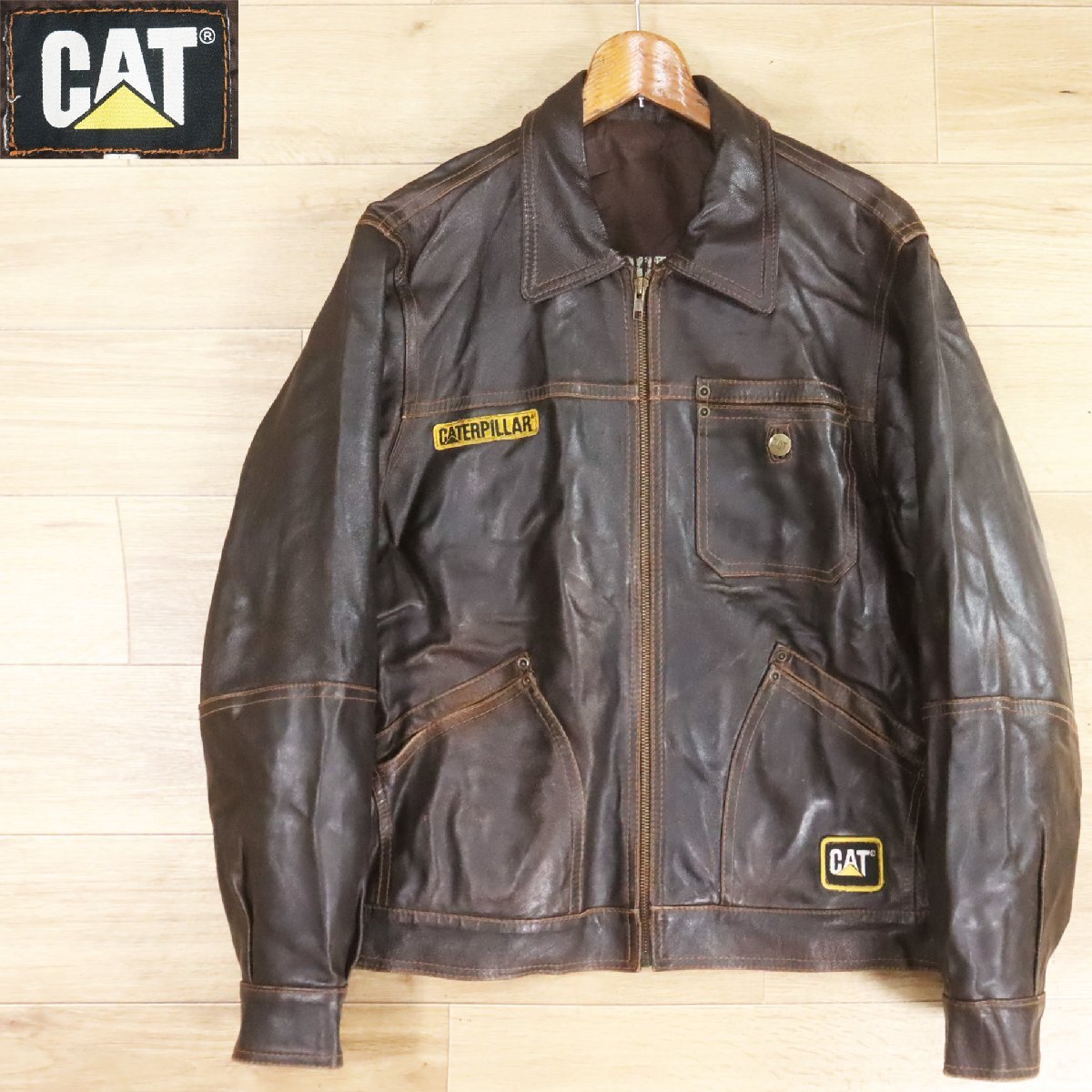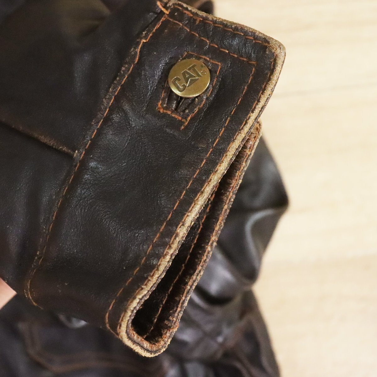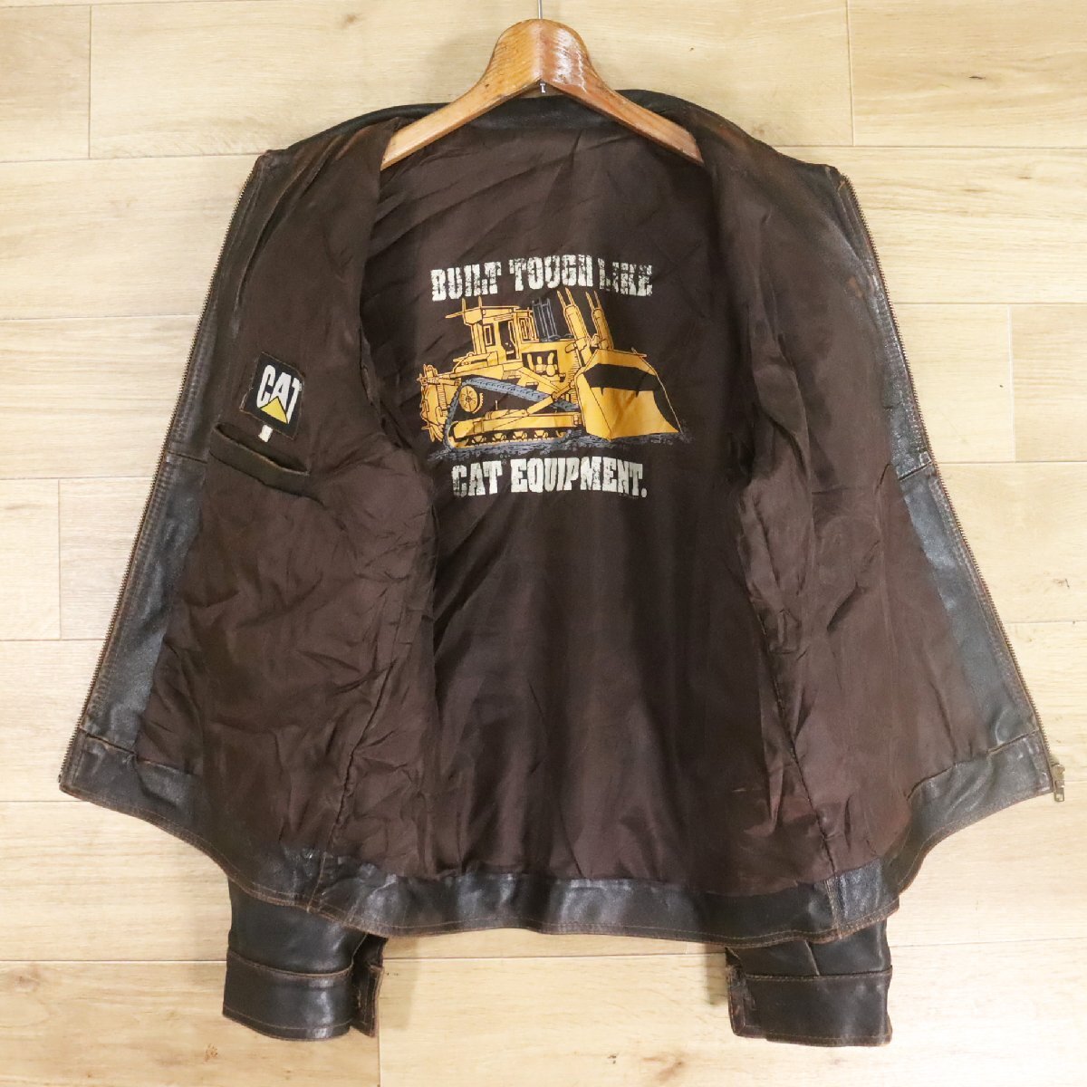 G4T/Y8.18-6 アメリカ古着 CAT キャタピラー CATERPILLAR シングルライダース 本革 レザージャケット L 皮ジャン 革ジャン