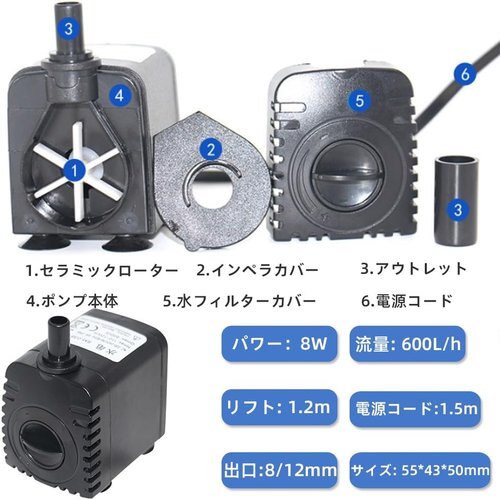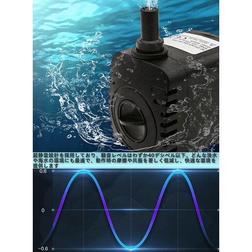 Renjzle 水中ポンプ 小型 水 防水 ミニポンプ 水槽潜水ポンプ 水換えポンプ 静音設計 排水ポンプ 吐出量600L/H 小型揚水ポンプ 水耕栽培 水族館水換え 養殖場 魚の水槽など適用 2つのノズル 131