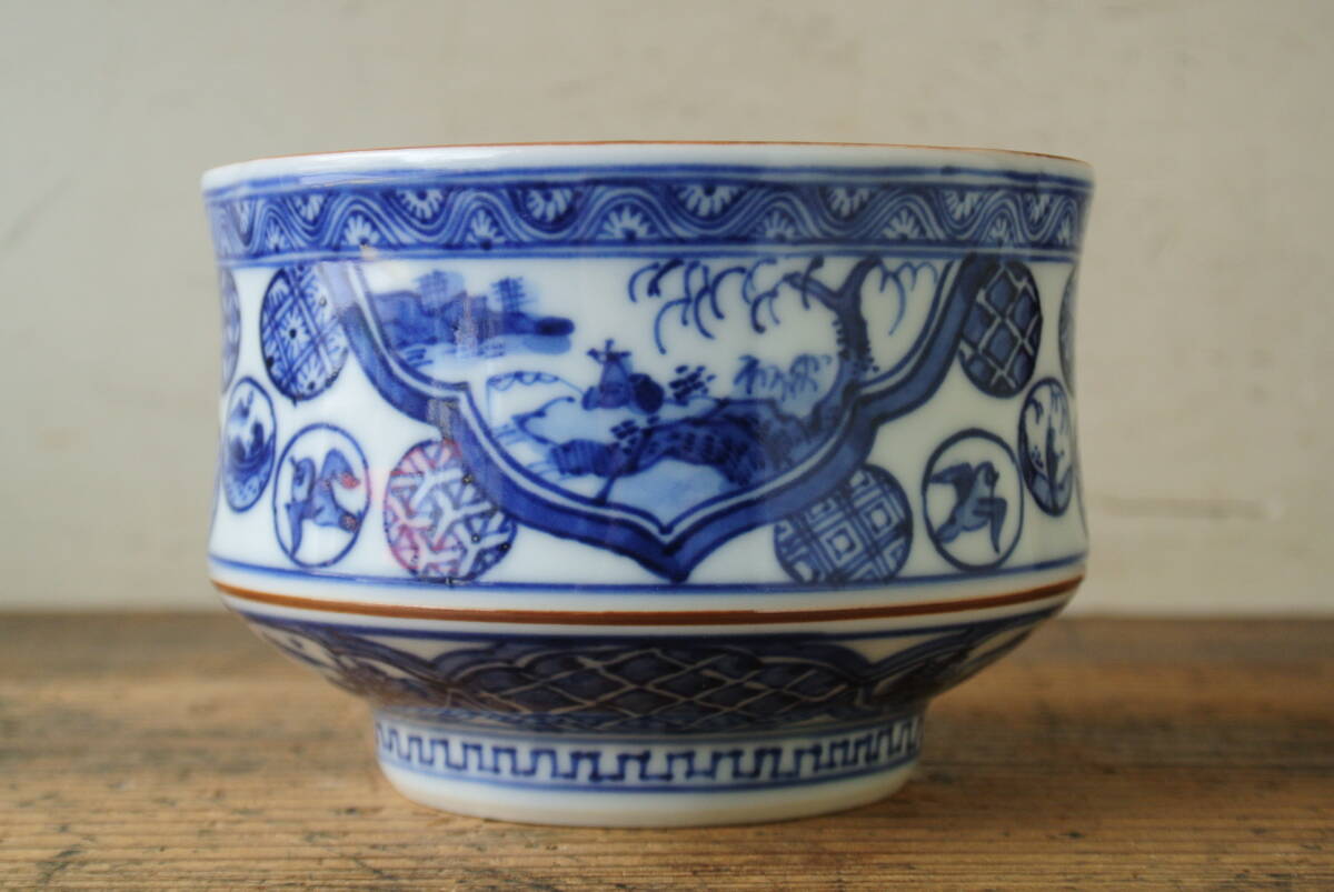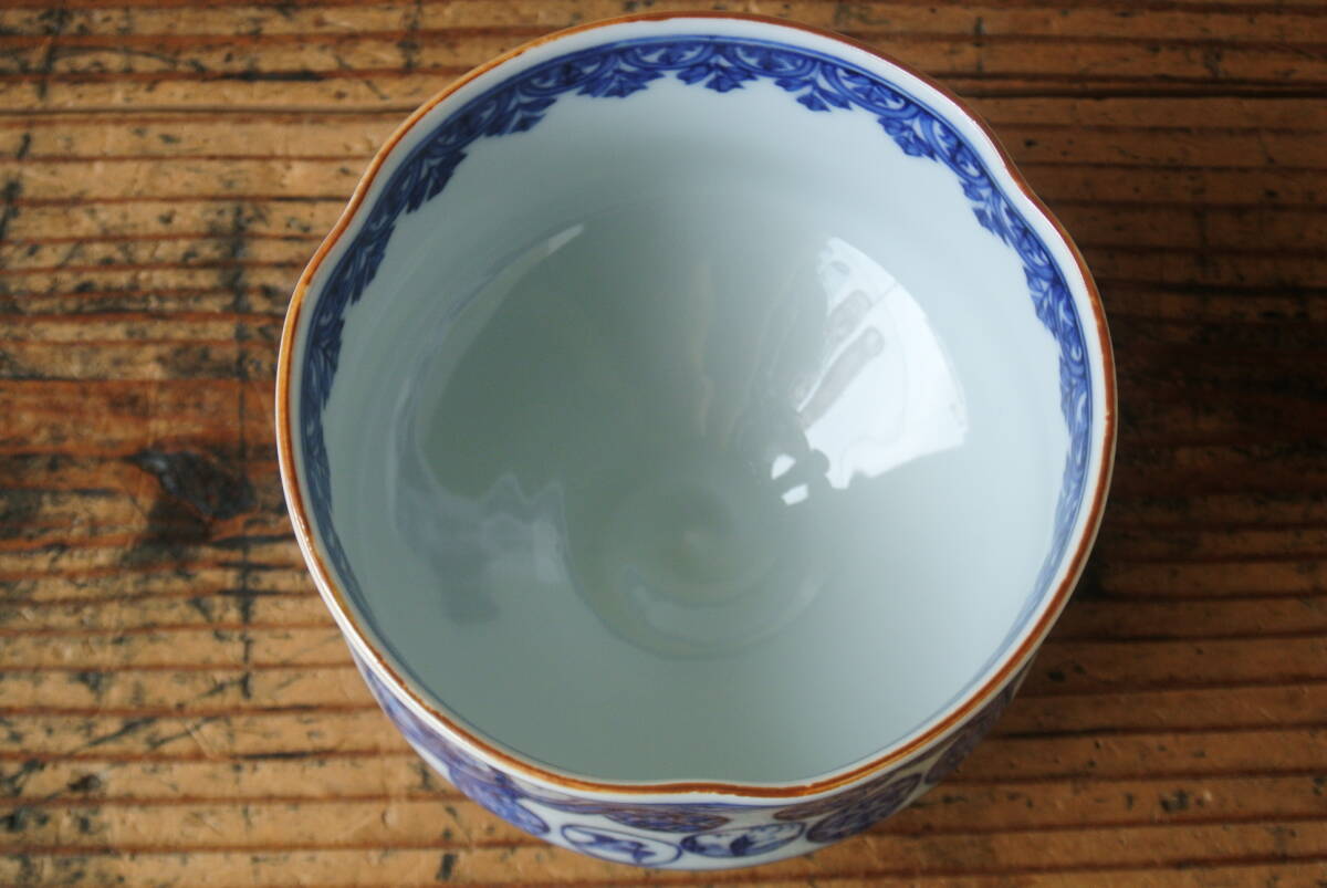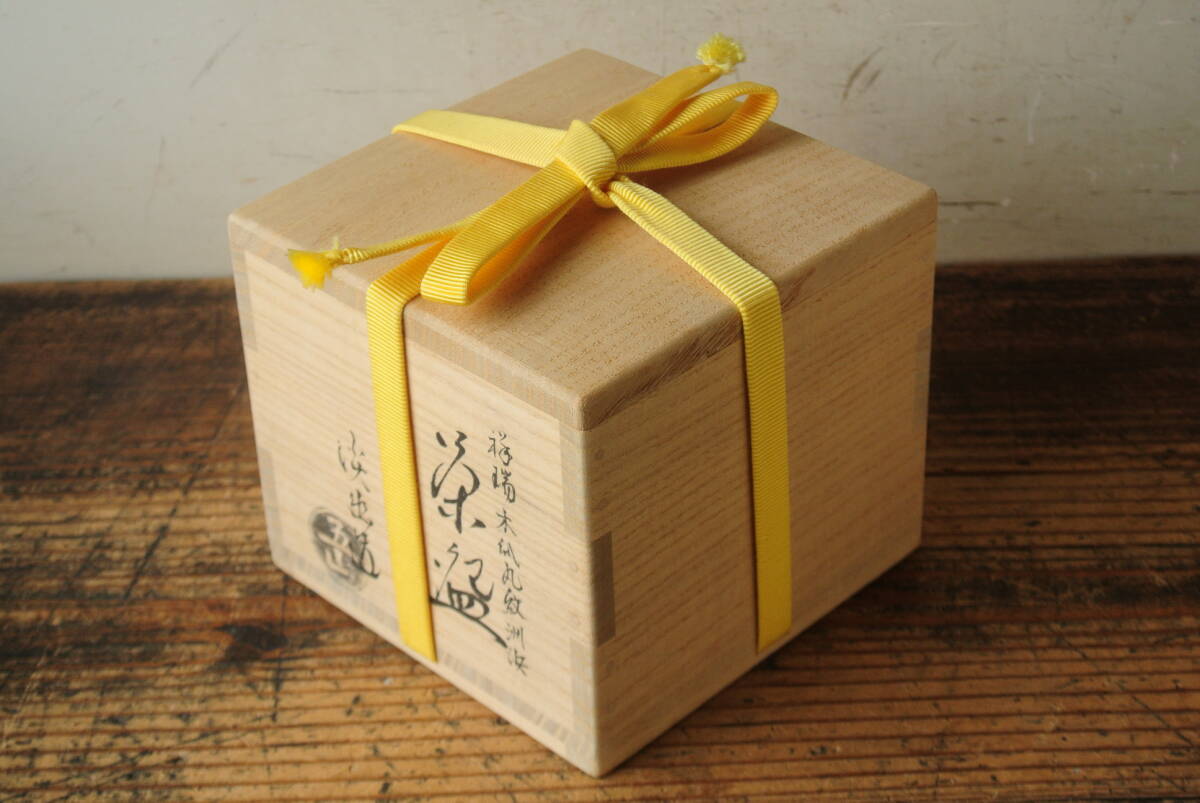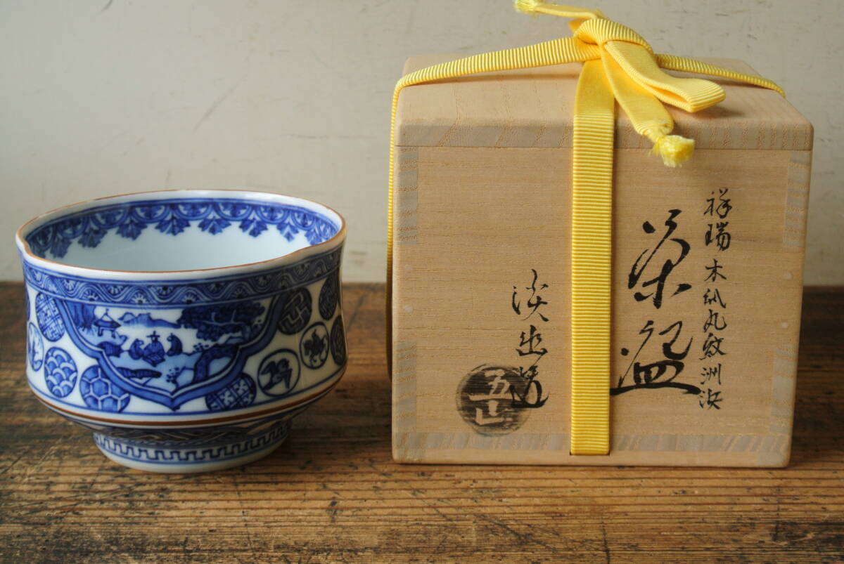 五山窯 林淡幽造 祥瑞木瓜丸紋洲浜茶碗 共布 共箱 検】茶道具