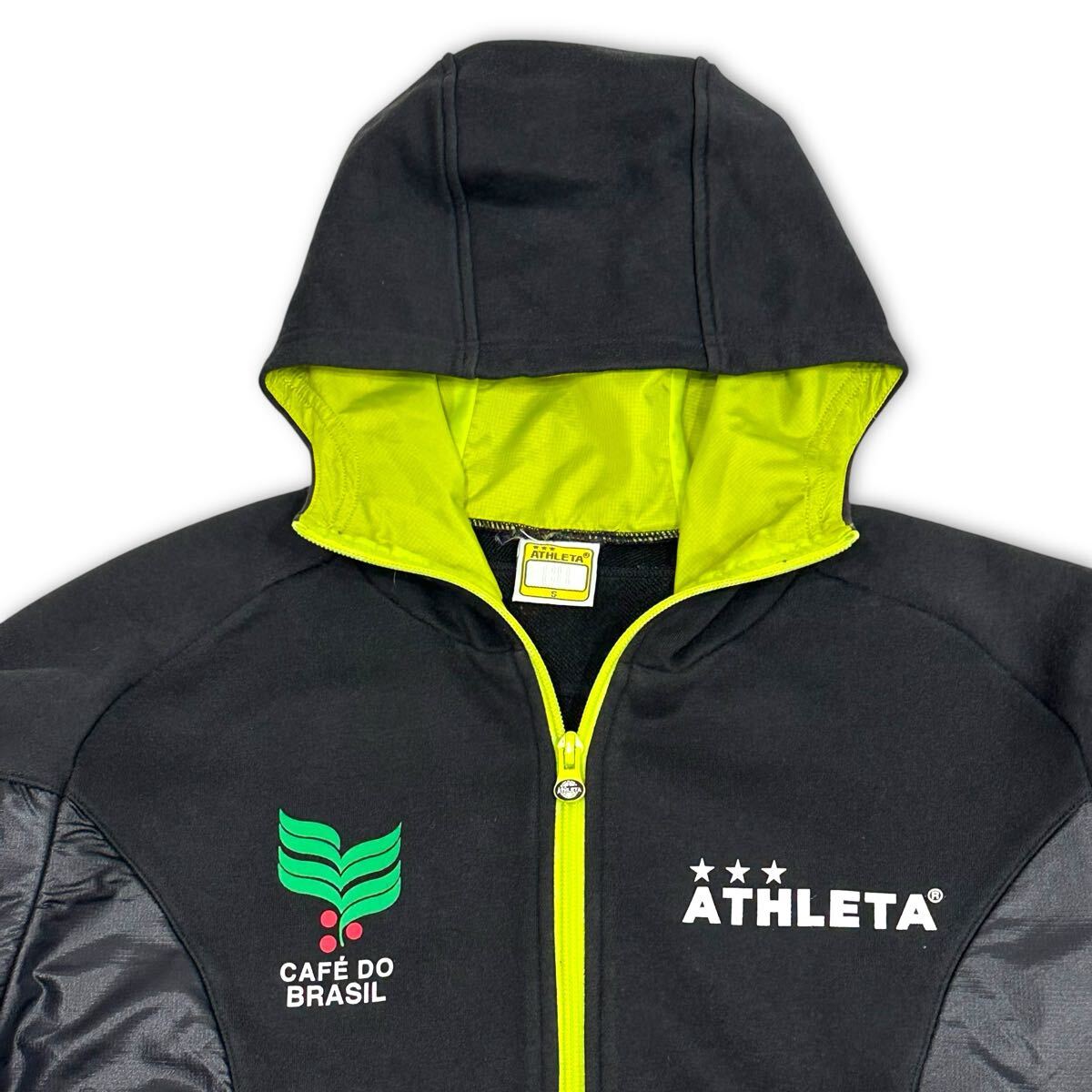 国内正規品■ ATHLETA (アスレタ) CAF DO BRASIL ナイロン スウェット ジャージ パーカー 黒ブラック 蛍光グリーン S フットサル サッカー