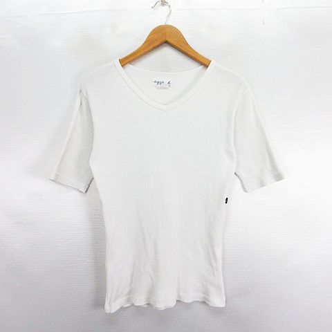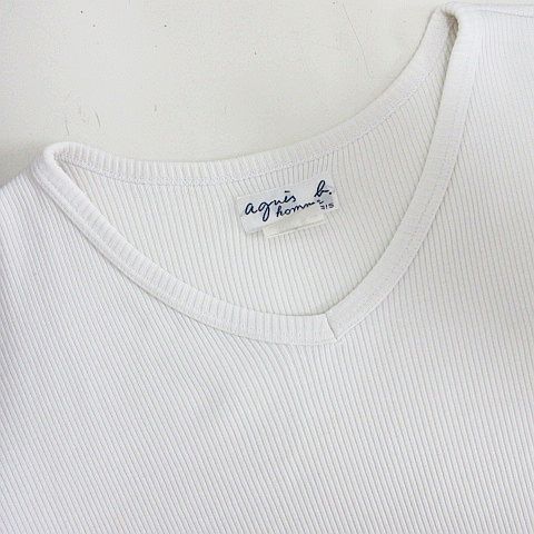 アニエスベーオム Agnes b. homme Tシャツ カットソー 半袖 Vネック リブ コットン 1 ホワイト ※EKM メンズ