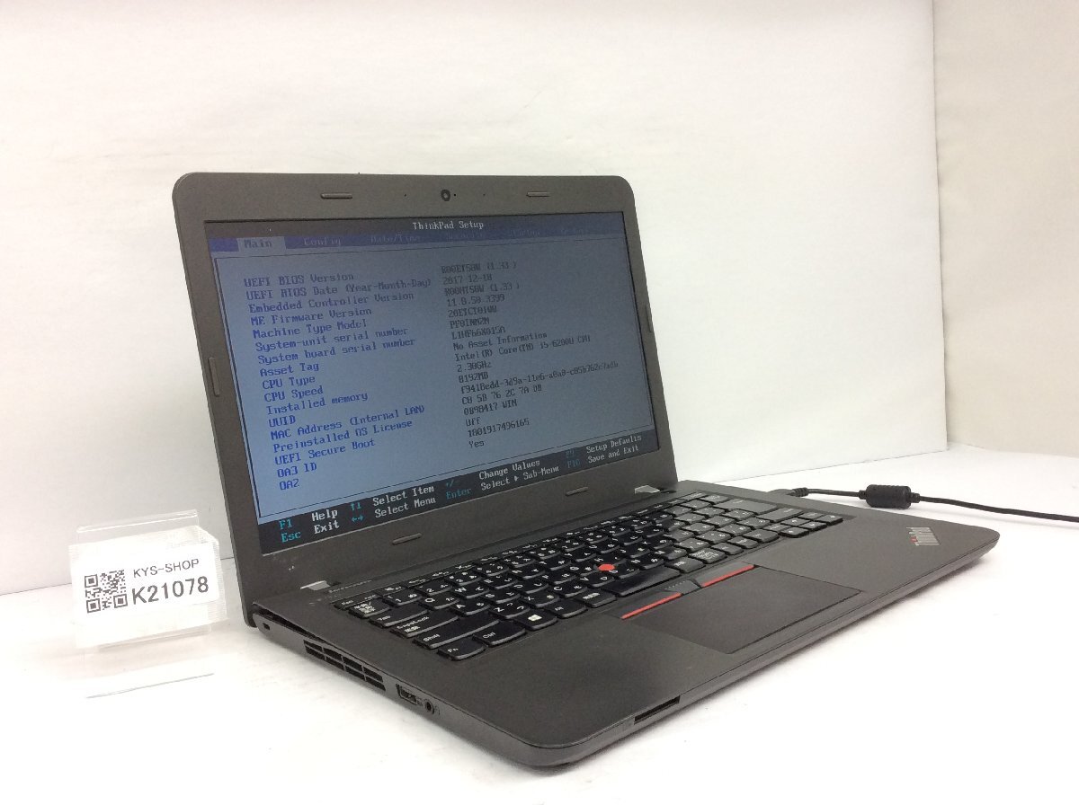 ジャンク/ LENOVO 20ETCT01WW ThinkPad E460 Intel Core i5-6200U メモリ8.19GB HDD500.1GB 【K21078】