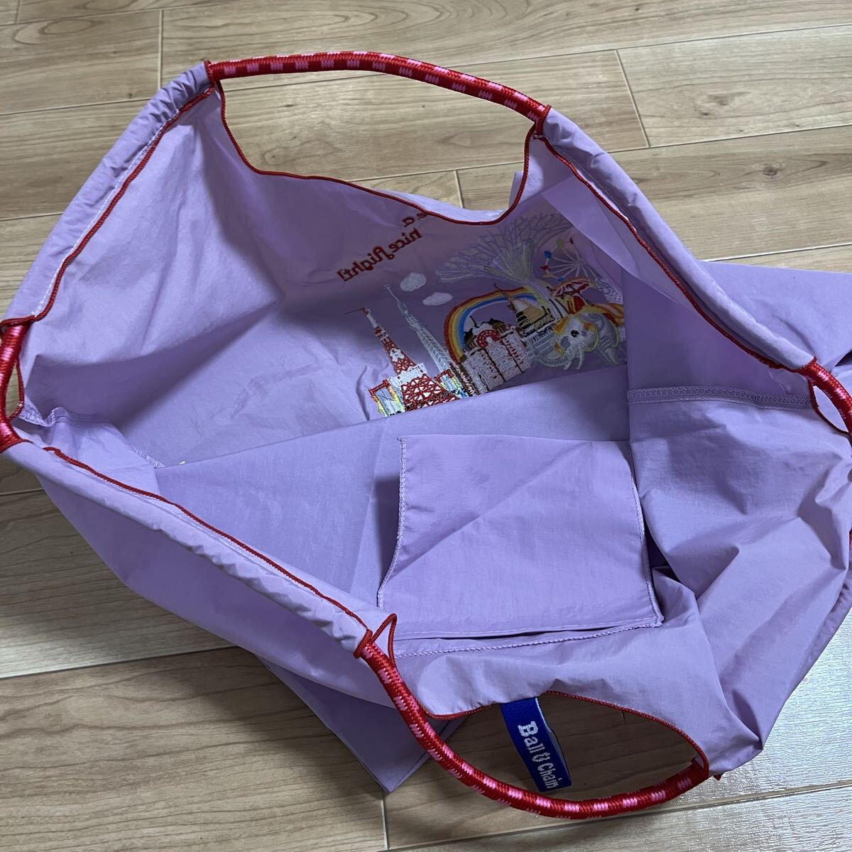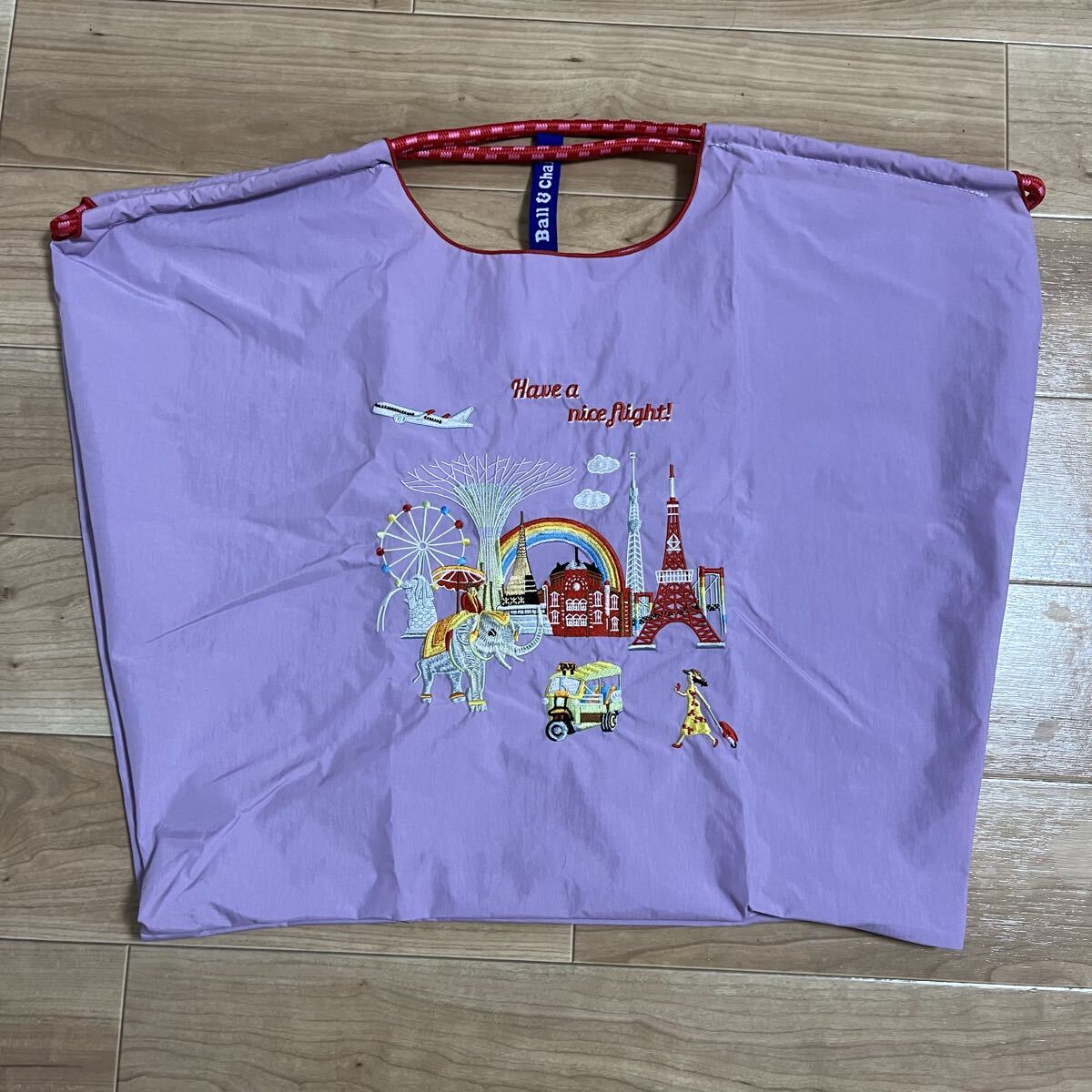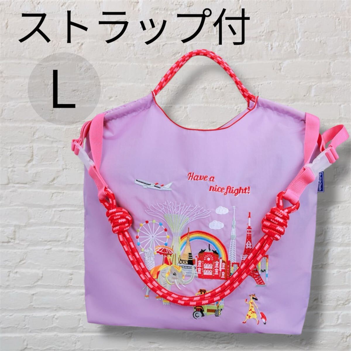 ライラック 紫系 東京・タイ・シンガポール柄 刺繍 エコバッグ shoppingbag トートバックショルダーストラップ付き【Lサイズ】