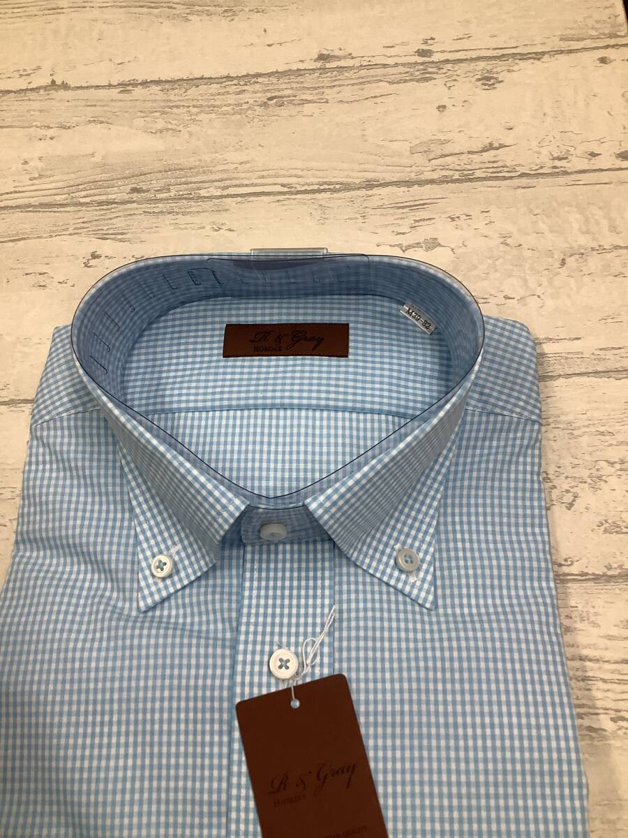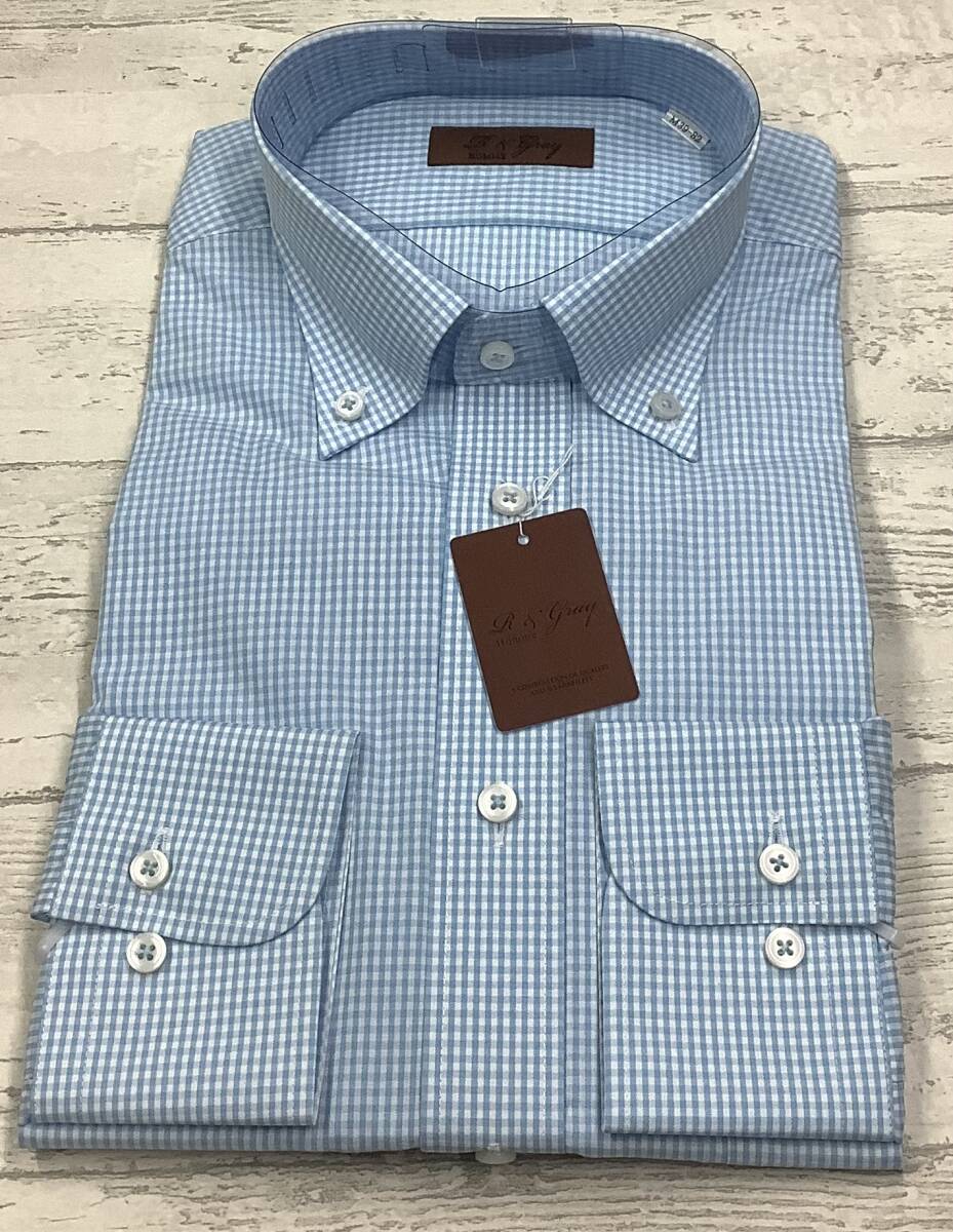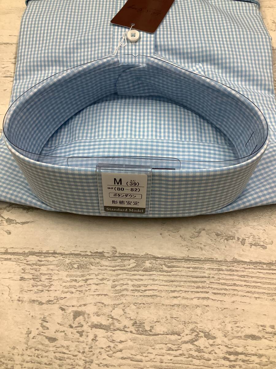 新品激安処分 39-82 表示 長袖Mサイズ 系 サックス系チェック生地 ボタンダウンシャツ★綿ポリドレスシャツ 形態安定