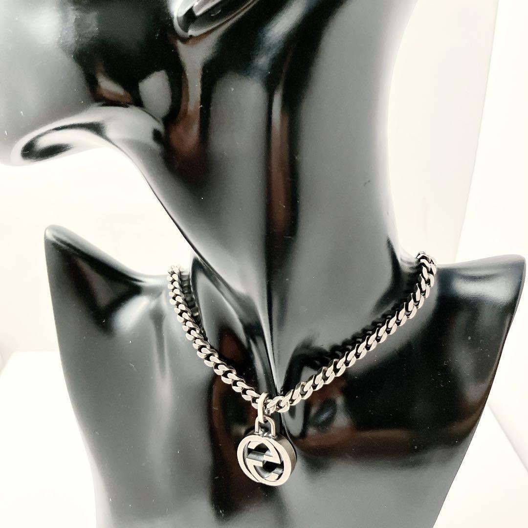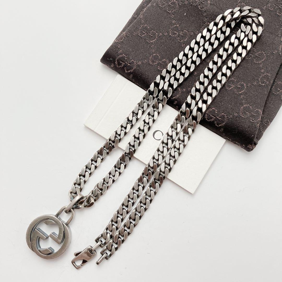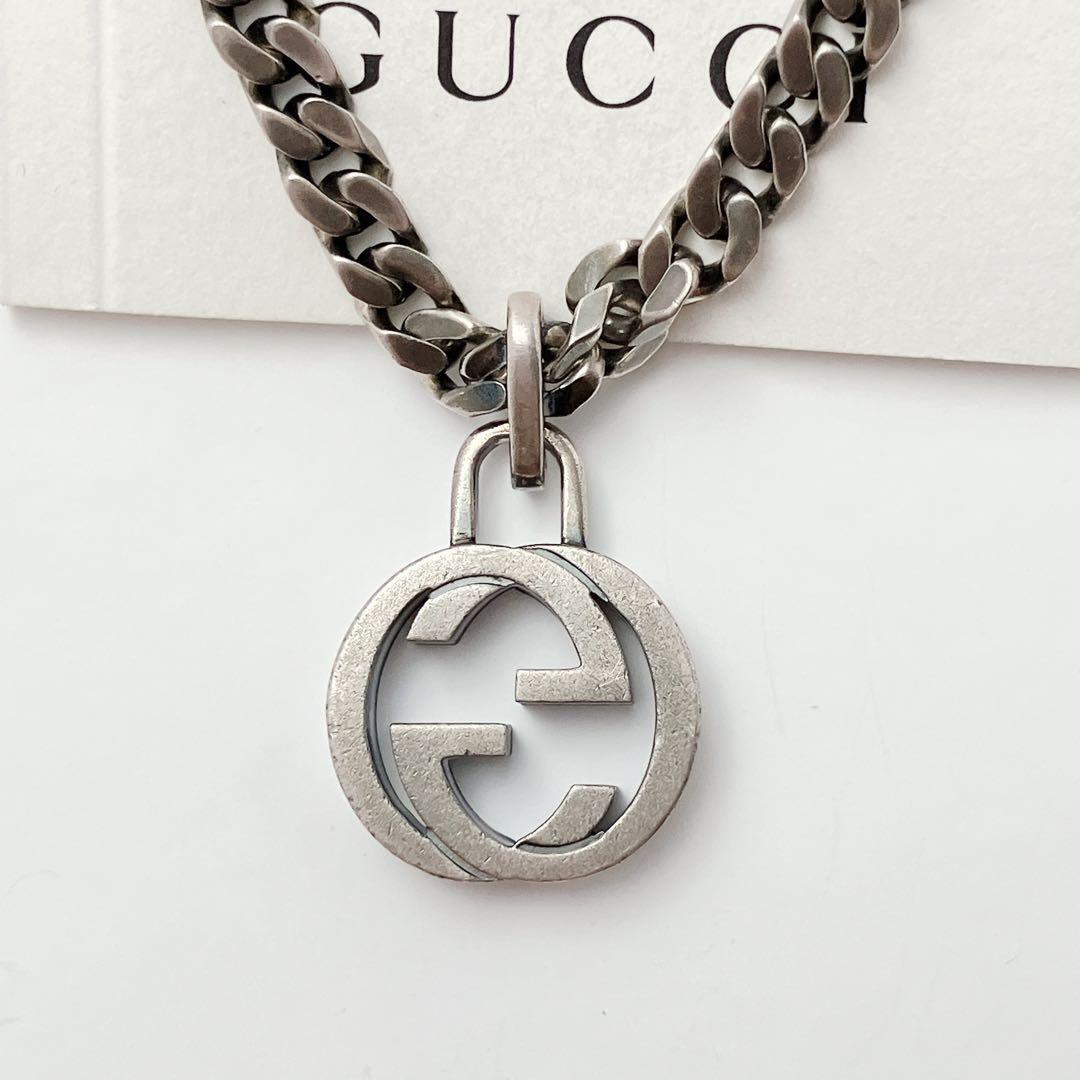希少 グッチ GUCCI 925 ネックレス メンズ ON453 ガンメタ シルバー アクセサリー レディース 喜平チェーン インター ペンダント