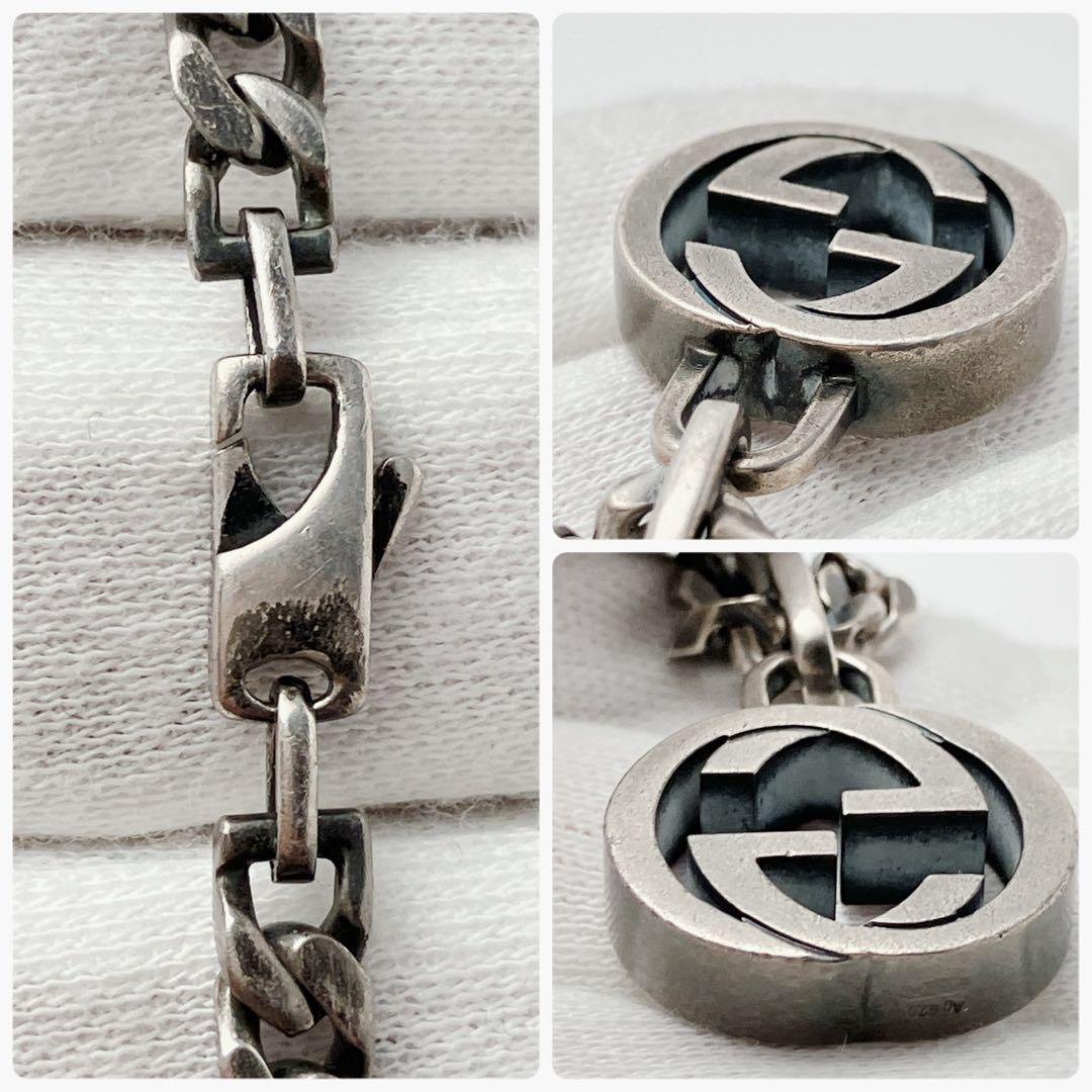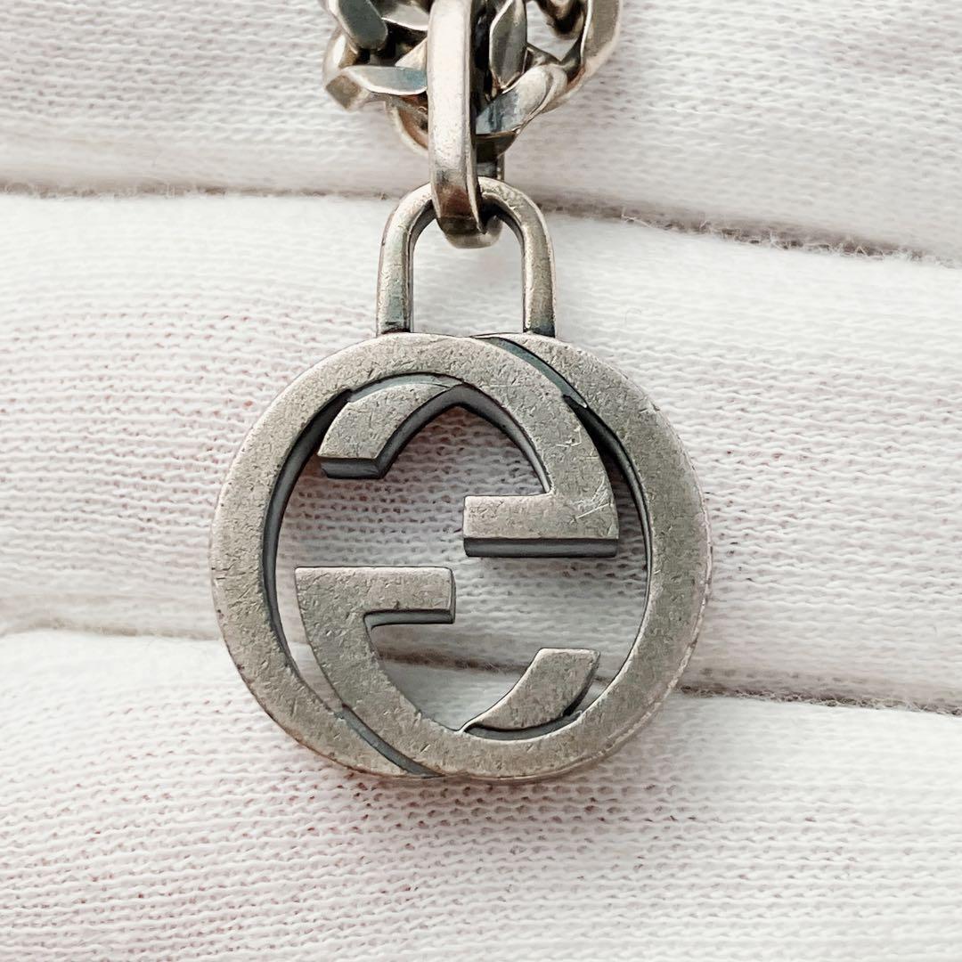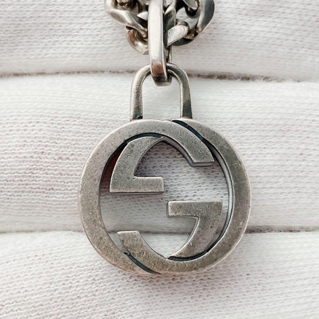 希少 グッチ GUCCI 925 ネックレス メンズ ON453 ガンメタ シルバー アクセサリー レディース 喜平チェーン インター ペンダント