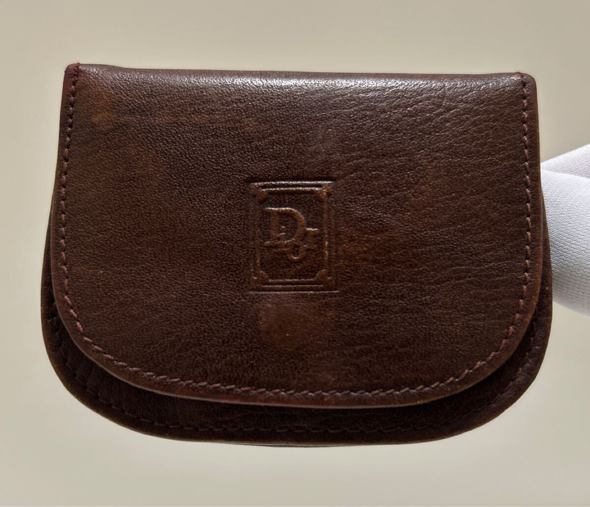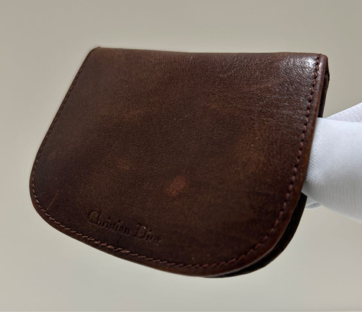 ◆Christian Dior ディオール コインケース ブラウン◆ 本革 ヴィンテージ 小銭入れ ロゴ刻印 鑑定済み 正規品保証【送料無料】0918