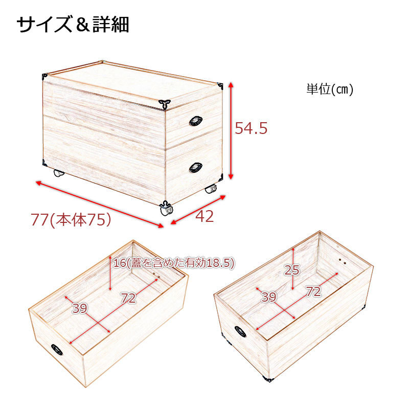■商品サイズ/本体:(約)幅42×奥行77(取っ手含む)×高さ54.5(キャスター含む)cm、内寸:(約)幅39×奥行72×深さ(浅)16(深)25cm