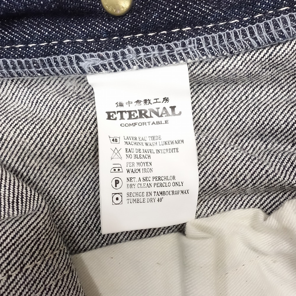 | 【備中倉敷工房 ETERNAL エターナル デニム パンツ ストレート ボタンフライ ジーンズ 25350 W34 インディゴ メンズ】 | |