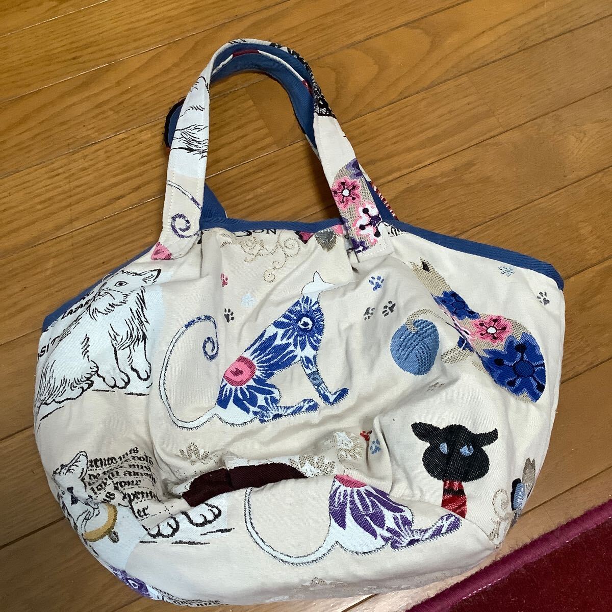 トートバッグ 花柄 肩掛け 大きめ 裏地 綿100% 表生地:スペイン製、裏生地フランス製、縫製日本 美品 送料230円