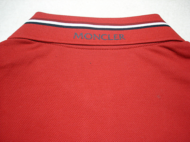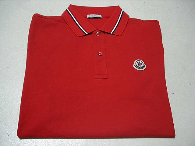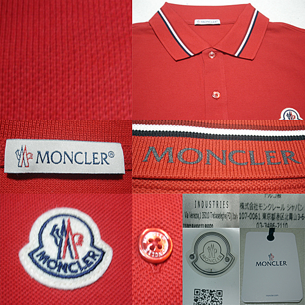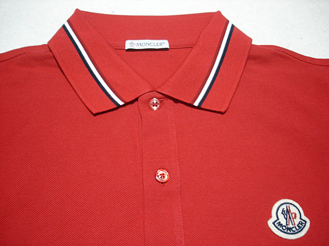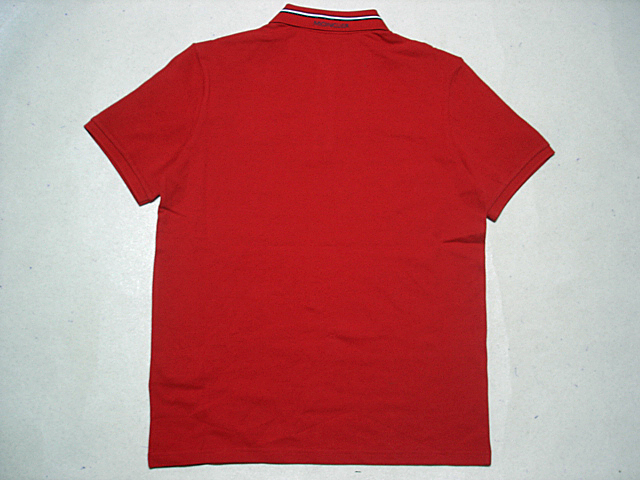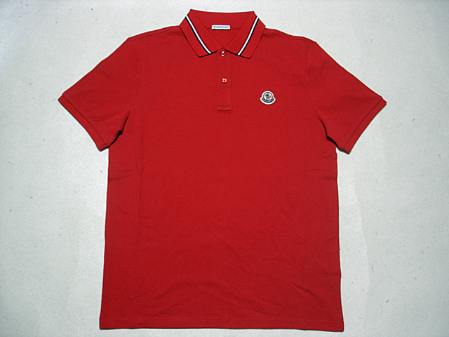 新品本物 モンクレール MONCLER お馴染みのアイコンロゴワッペン付き 半袖ポロシャツ S/M程 襟トリコ ピケ 鹿の子編み レッド系 メンズ