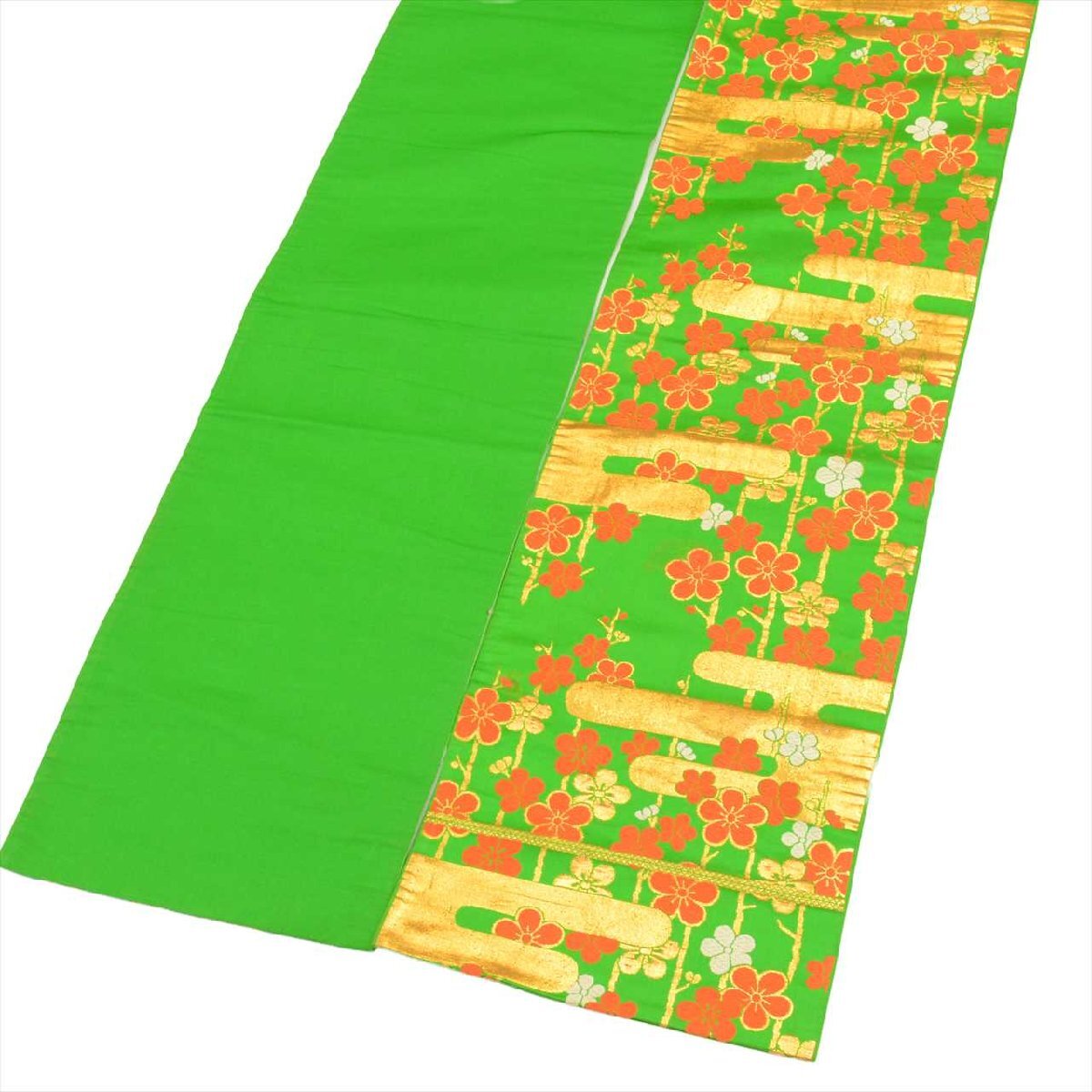 緑色にヱ霞や槍梅文様が施された可愛いリサイクル帯です。