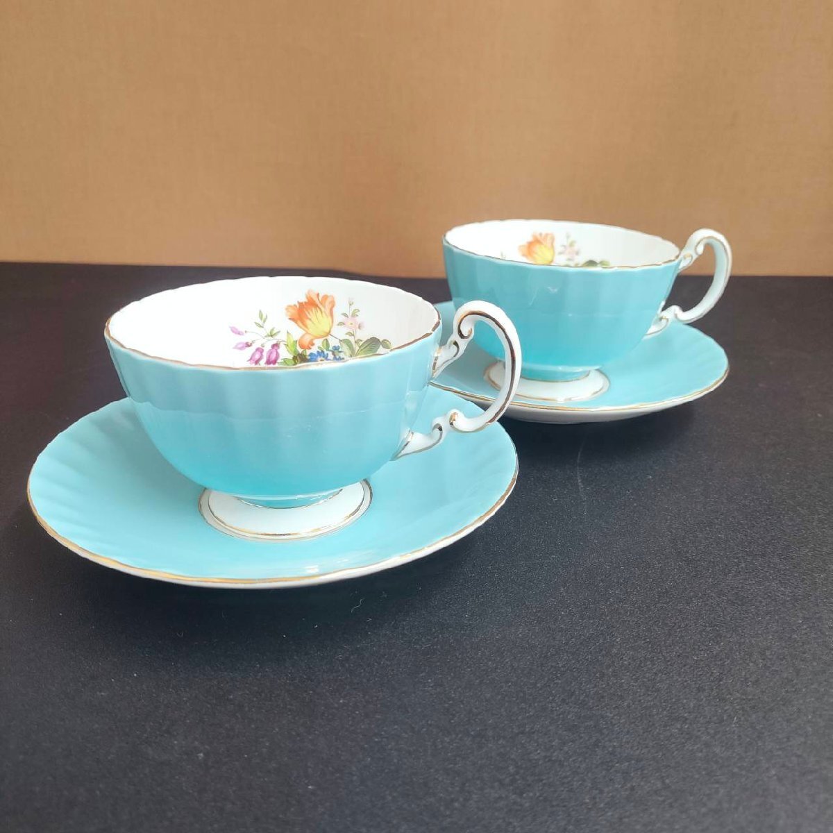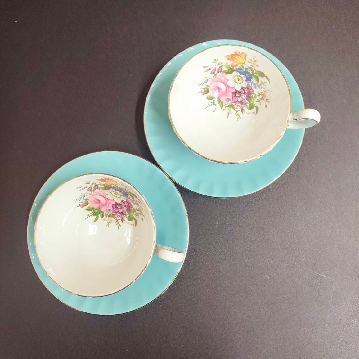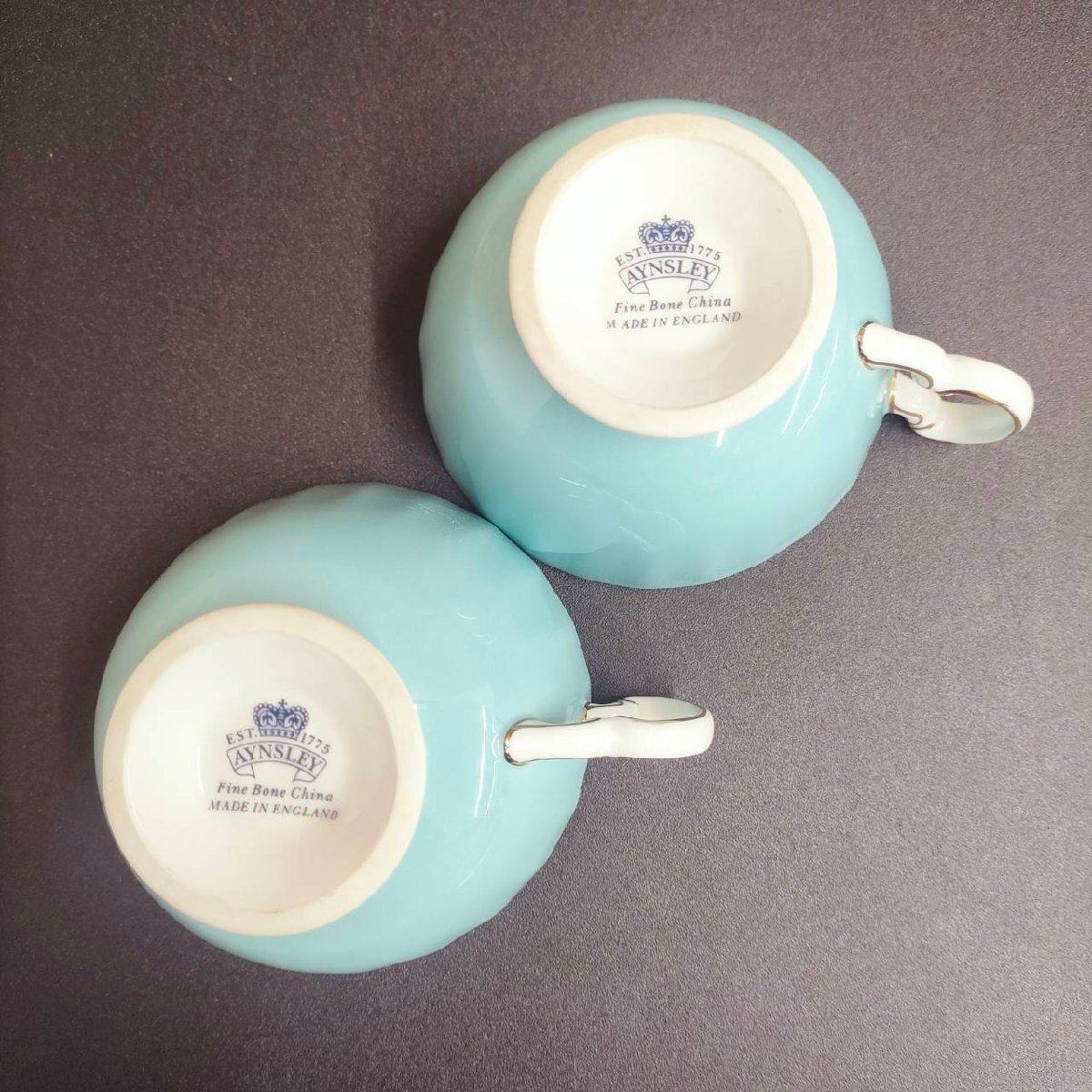 [b25090041] Aynsley エインズレイ ハワードスプレー ペアカップ&ソーサー ターコイズ
