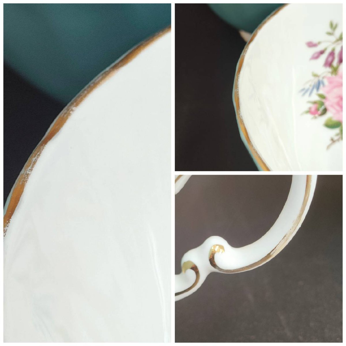 ソーサー表面(カップを置く部分)や取手の金彩にスレが目立つ箇所がございます。