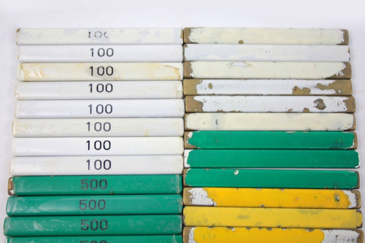 全自動麻雀卓用の点棒、雀牌が入荷致しました。 全体的に傷や汚れ、塗装の剥がれなど使用感があります。 点棒の動作に問題がないことを確認しましたが、 雀牌ので動作については未確認となります。 詳しい商品状態につきましては写真よりご確認ください。 この機会に是非ご検討宜しくお願い致します。 【当アメNETでは】 出品する際の工具や業務用品、他の商品におきまして、清掃(吹き上げ)や動作確認をおこなっておりますが、 骨董・アンティークに関しては雰囲気を損なわないよう、最小限の清掃に留まらせて頂いております。 |