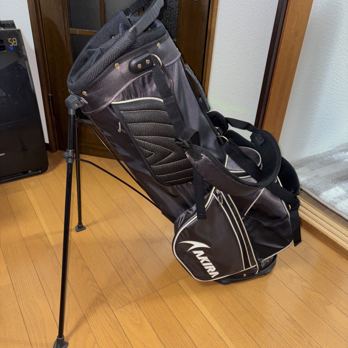 AKIRA アキラ スタンドキャディバッグ フード付 5分割 軽量キャディバッグ ゴルフバッグ スタンド スタンド式キャディバッグ
