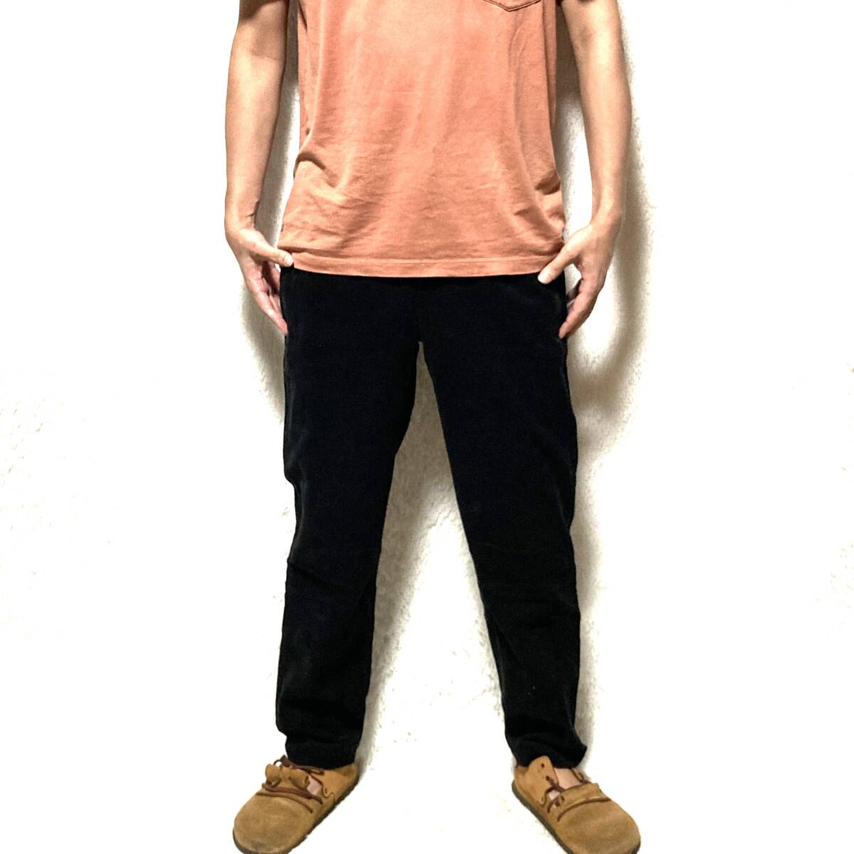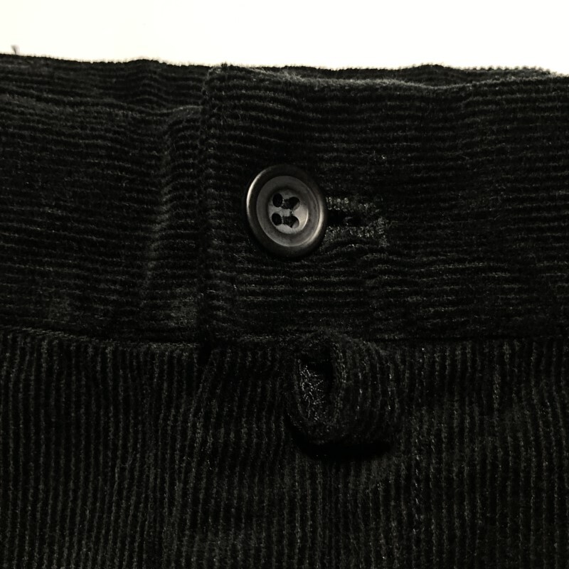 高めに設定されたウエストライン、しっかりとした畝が美しいコーデュロイ生地。