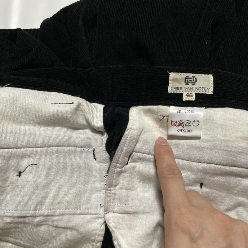 DRIES VAN NOTEN★激レア 初期タグ 90s archive★コーデュロイパンツ ハイウエスト 黒 46 ドリスヴァンノッテン C-TK1003表記 ヴィンテージ