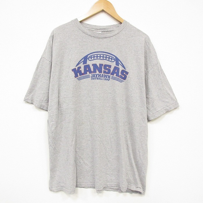 【商品名】 XL★古着 アディダス adidas 半袖 ビンテージ Tシャツ メンズ 00年代 00s カンザスジェイホークス 大きいサイズ クルーネック グレー 霜降り