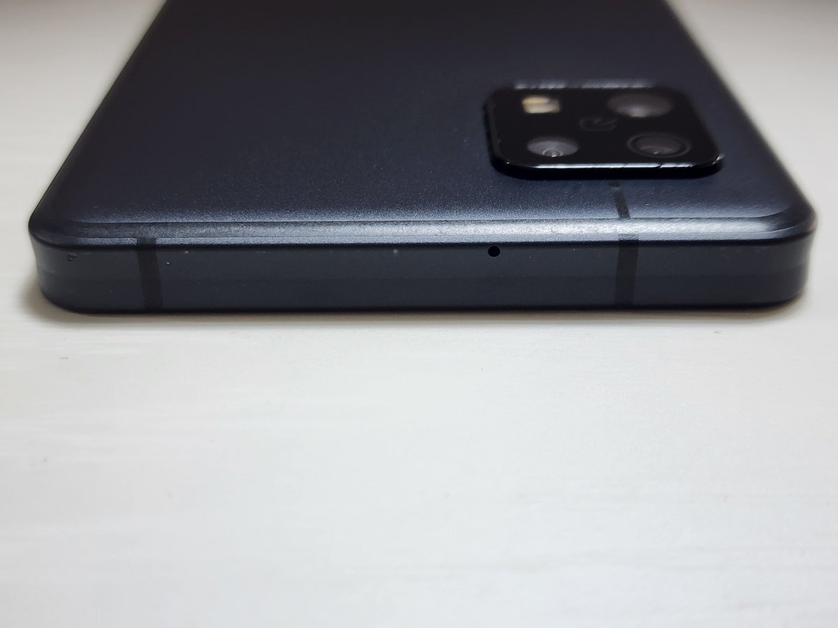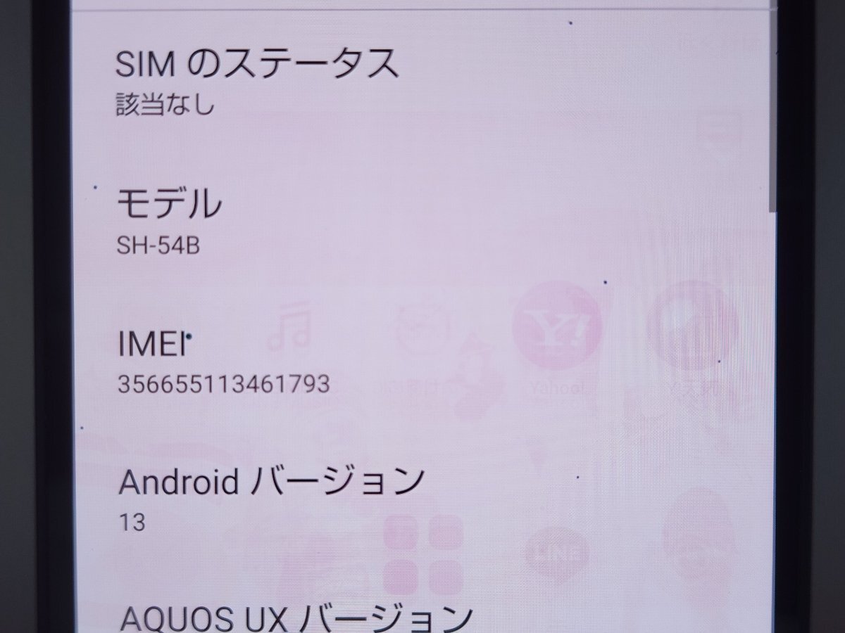 【外装状態】: J 本体が反っています。画面に目立った傷はありません。側面は全体的にカバー痕がついてるほか、小さい打痕がついています。また、コネクタやSIMトレーに塗装剥げがあります。背面も全体にカバー痕があり、傷がいくつかついています。アウトカメラの縁に小さい打痕がついていて、レンズカバーには傷がありますが、カメラは正常です。機能面は、画面に濃いピンク色の焼付きがあるほか、ドット抜けが多数見られます。