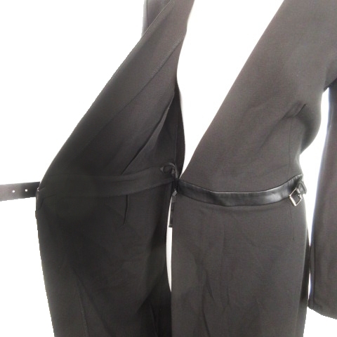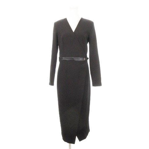 ゲピュル GEPUR ワンピース カシュクール ロング 長袖 ベルト ウエストマーク S 黒 ブラック /AH10 レディース