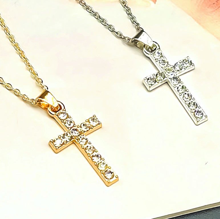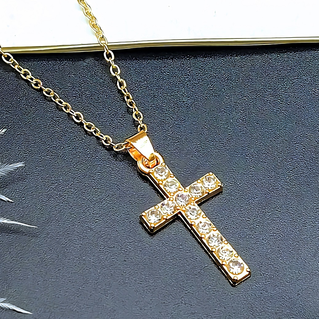 新品1円~★送料無料★黄金の十字架クロス 七色ダイヤモンド信仰K18GFゴールドネックレス誕生日プレゼント旅行連休秋祭冬休ギフト 国内発送