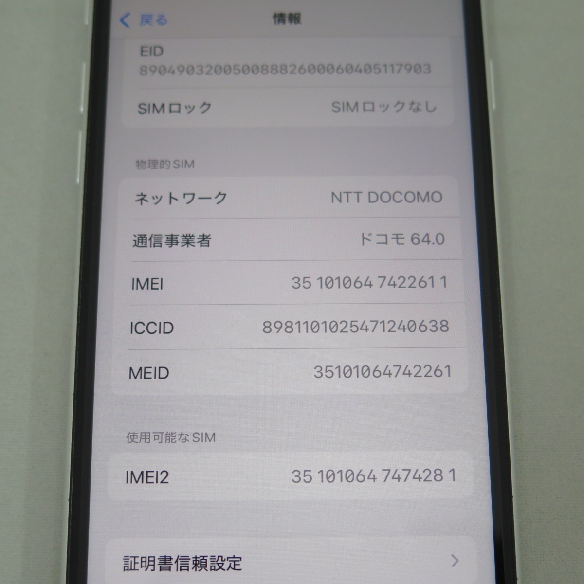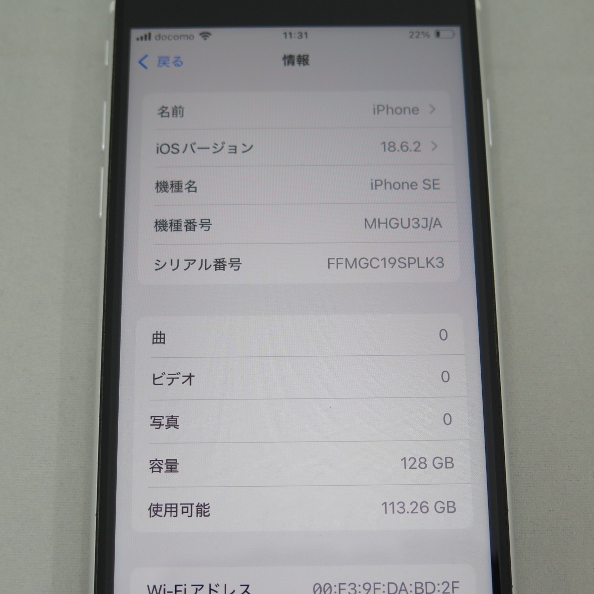 iPhone SE 2 第2世代 128GB ホワイト docomo SIMロック解除済中古品 2611