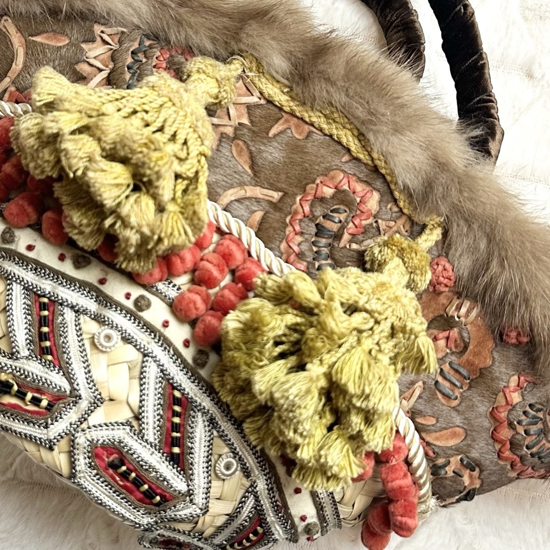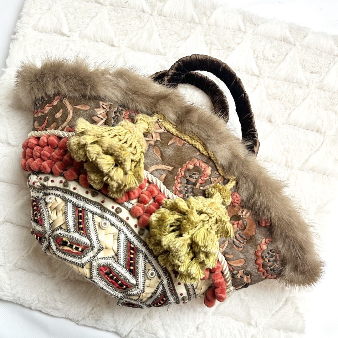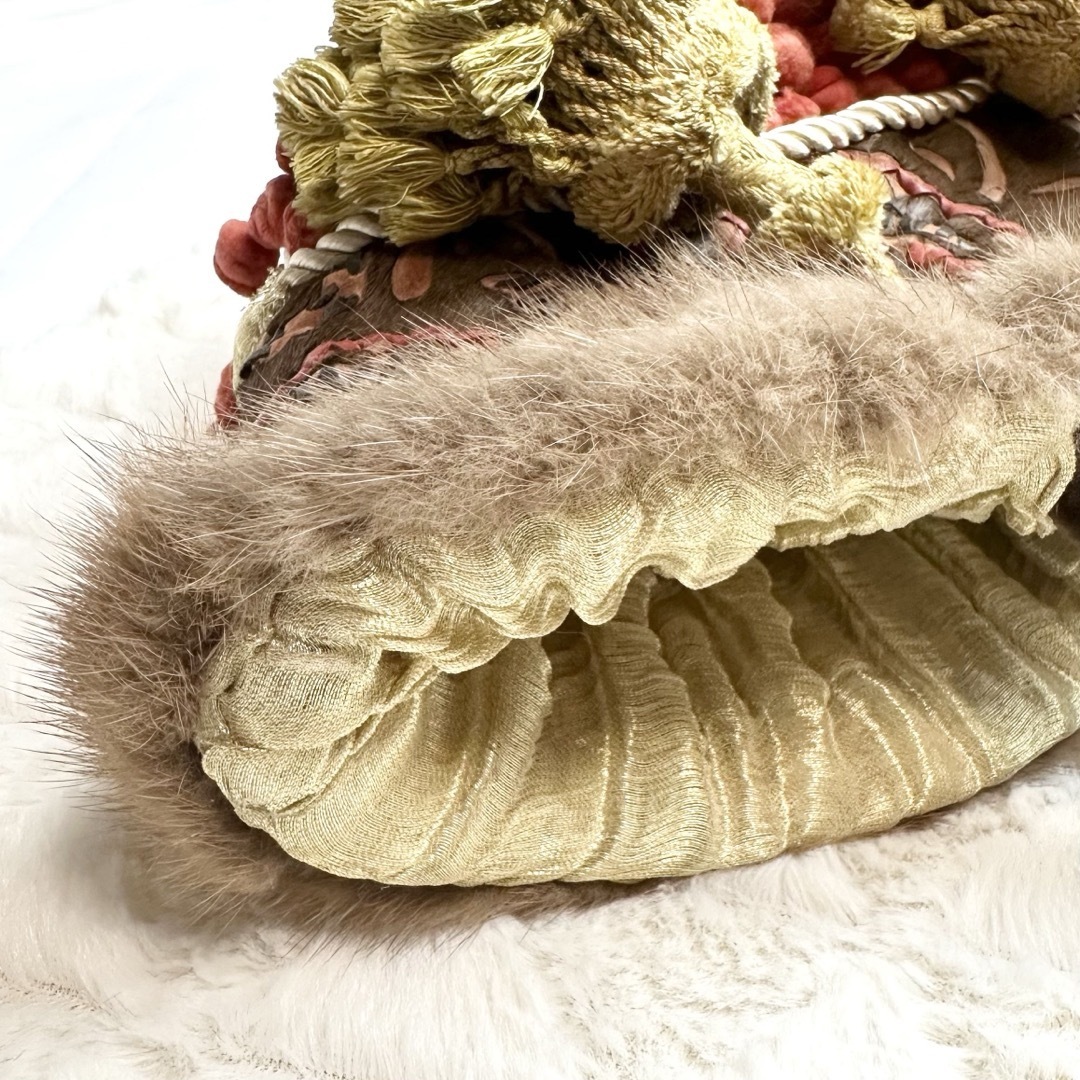 ブラウンを基調に、柔らかなベロア素材、刺繍のアクセント、