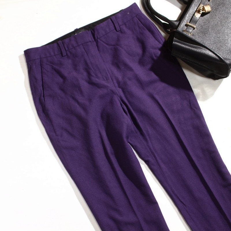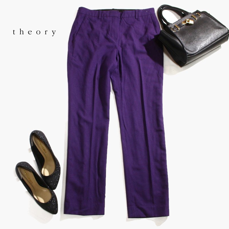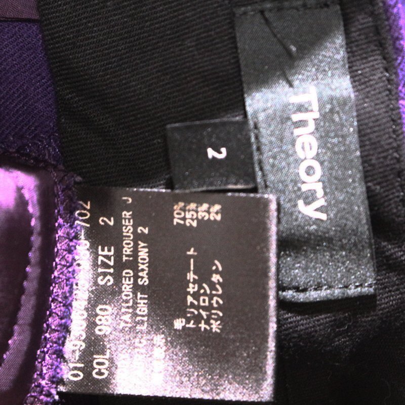 美品 セオリー Theory 秋 冬 高級感 上品 毛70% ウール テーパードパンツ スラックス ウールパンツ 9号 2 パープル 紫 パンツ オフィス