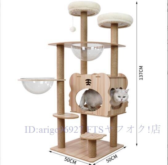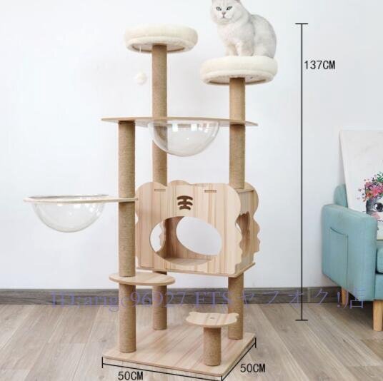 ★新品キャットタワー透明宇宙船頑丈据え置き木製麻紐爪とぎボール 猫ベッド 大型 木目調 多頭飼い 据え置き型 爪とぎ 猫タワー 高さ137cm