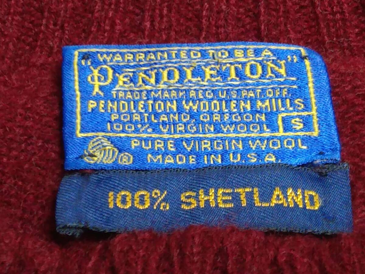 USA製 PENDLETON ペンドルトン クールネックウールニット T160-165相当 ワインレッド系 旧タグ シェットランドウール100%
