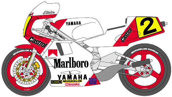 1/12 YAMAHA YZR500 1986 マルボロ #2 ローソン仕様のパーツとデカールです。