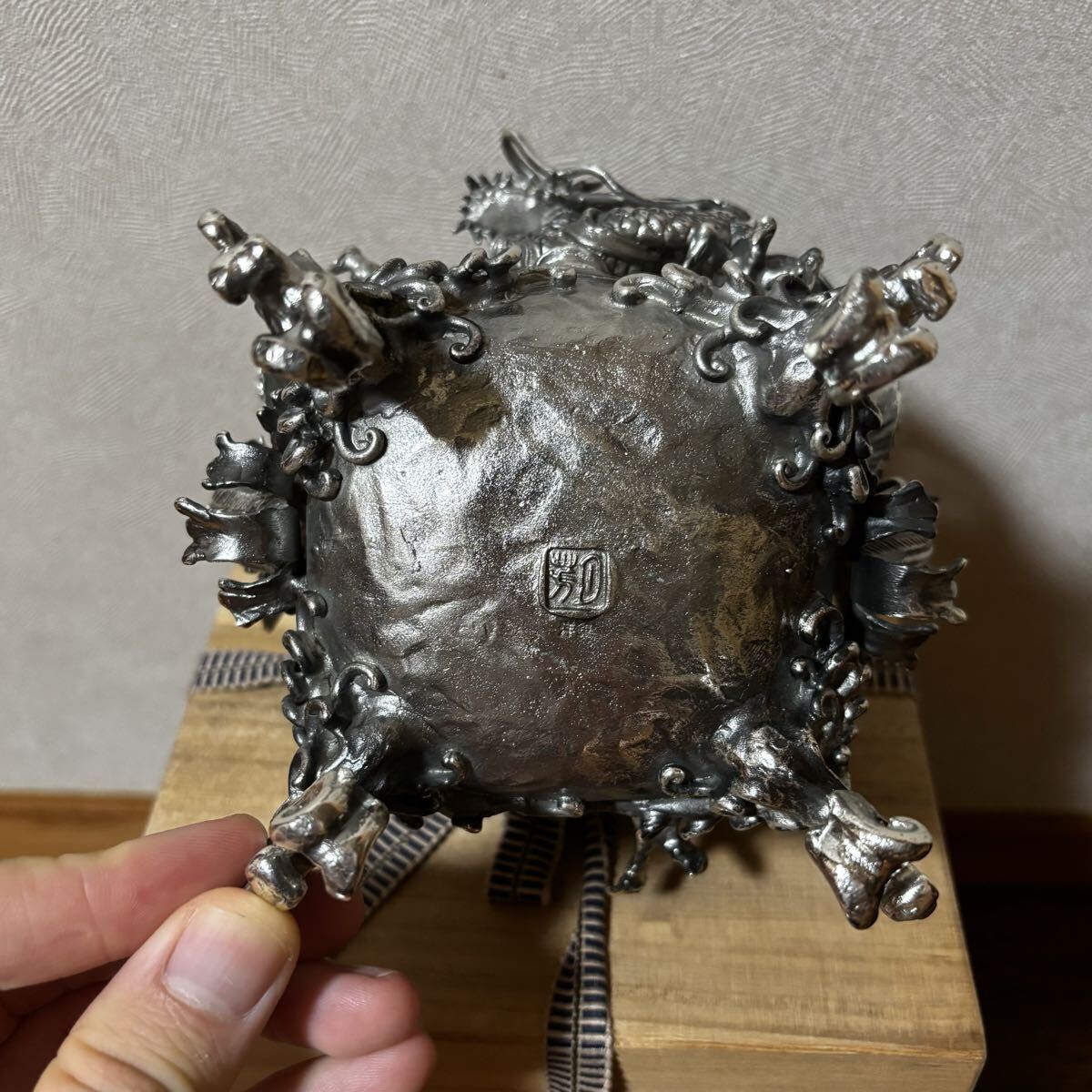 美品 希少 高岡銅器 洋銀 香炉 須賀 月芳 作 龍巻 証明書付 香道具 骨董 古美術 伝統工芸 木箱 コレクション 送料無料