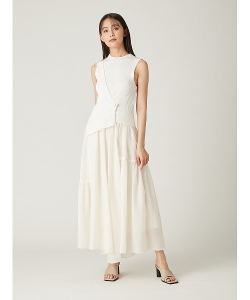 参考商品名:メタルブローチリブニットコンビフレアワンピース
