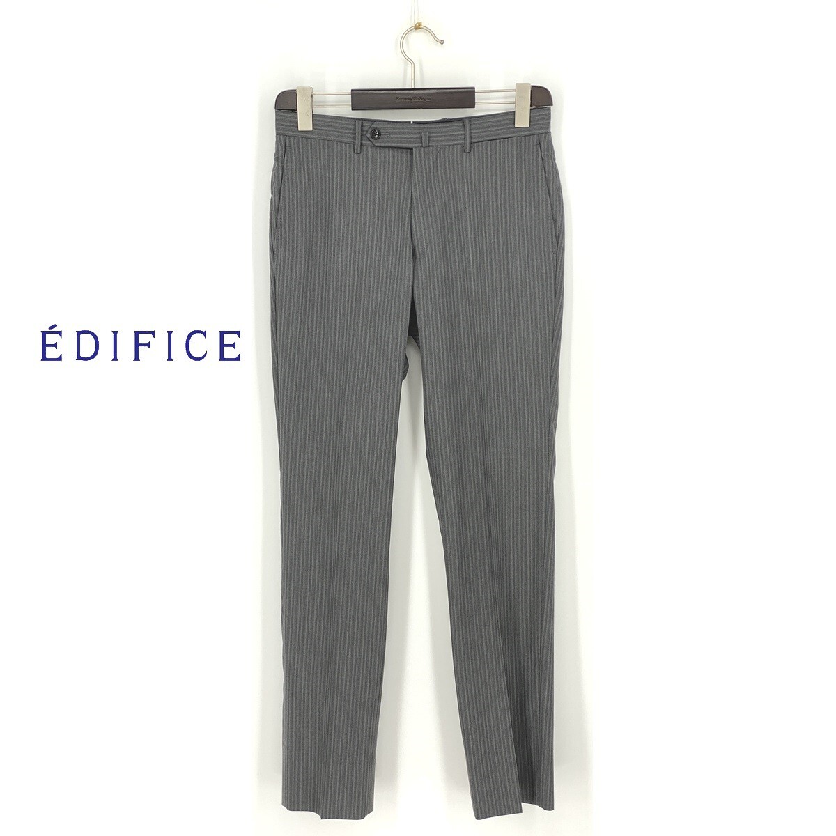 B0509/美品 EDIFICE エディフィス ウール ストライプ テーパード スラックス パンツ トラウザーズ 46 M程 灰色 メンズ スーツ用 ビジネス