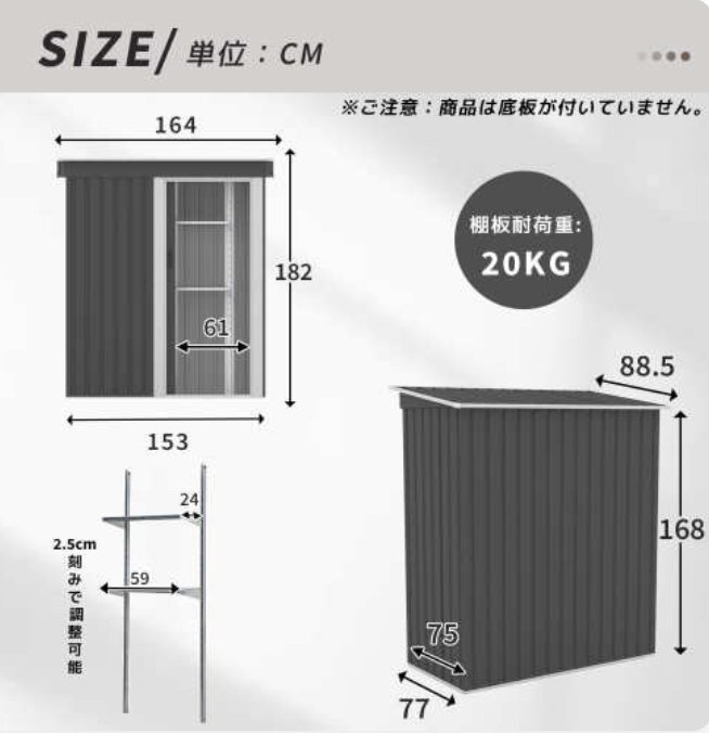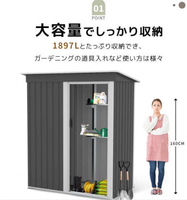 物置 屋外 大型 倉庫 大型物置 戸外収納庫 物置 防水/耐侯 収納可能 ガーデン/庭/田畑/農場 頑丈 大容量 スチール 床なし グレー