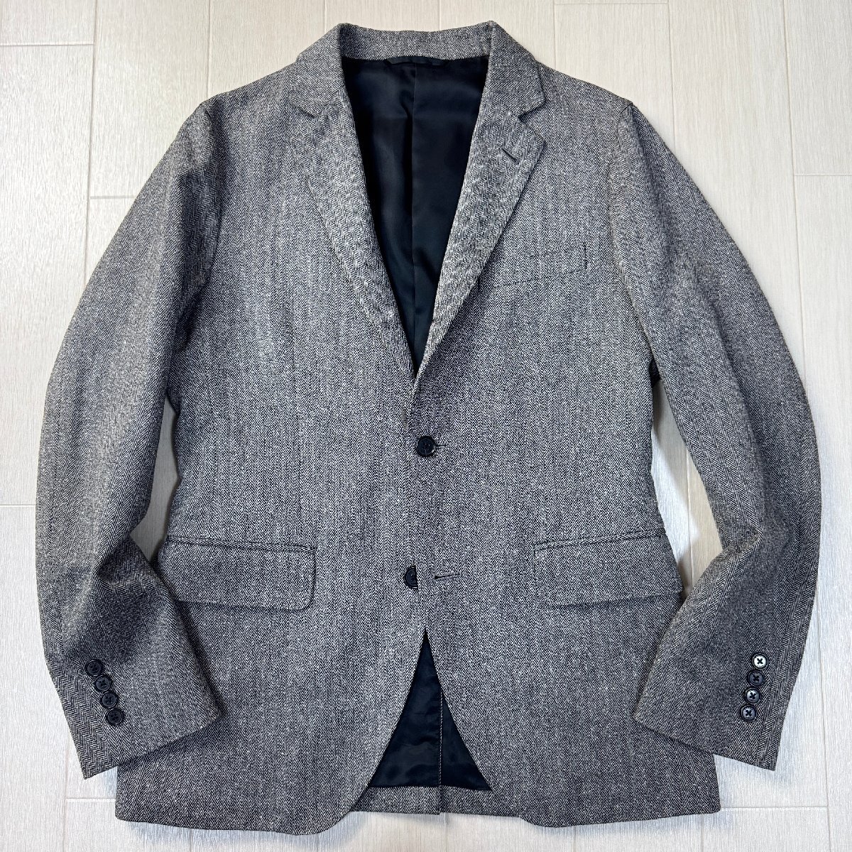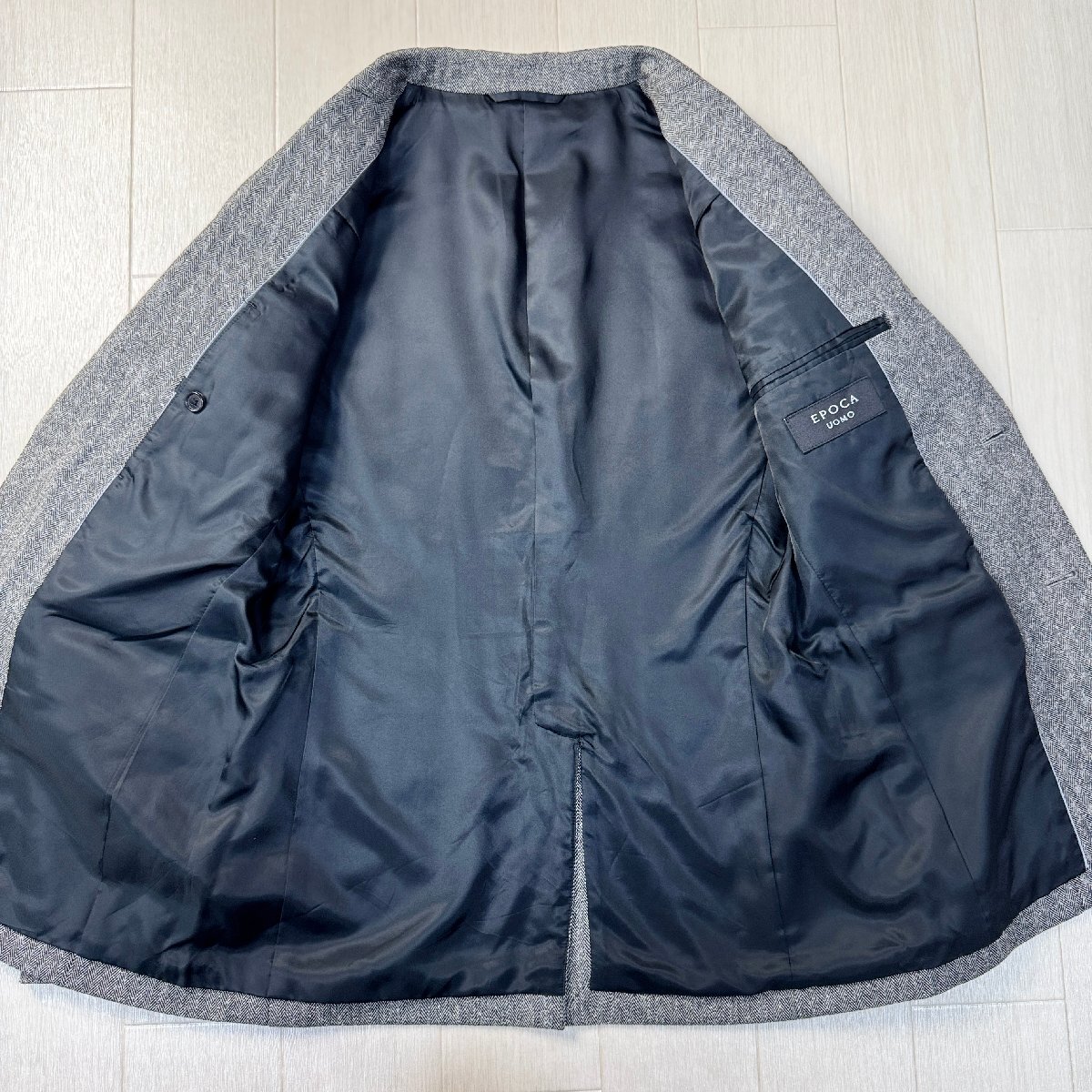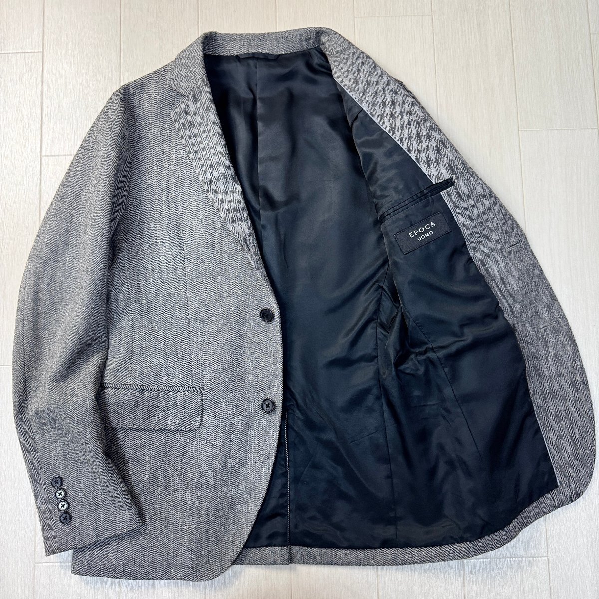 美品/46 M相当★エポカウォモ/EPOCA UOMO メランジツイード ウールジャケット シングル ブレザー ロゴ刻印ボタン メンズ グレー